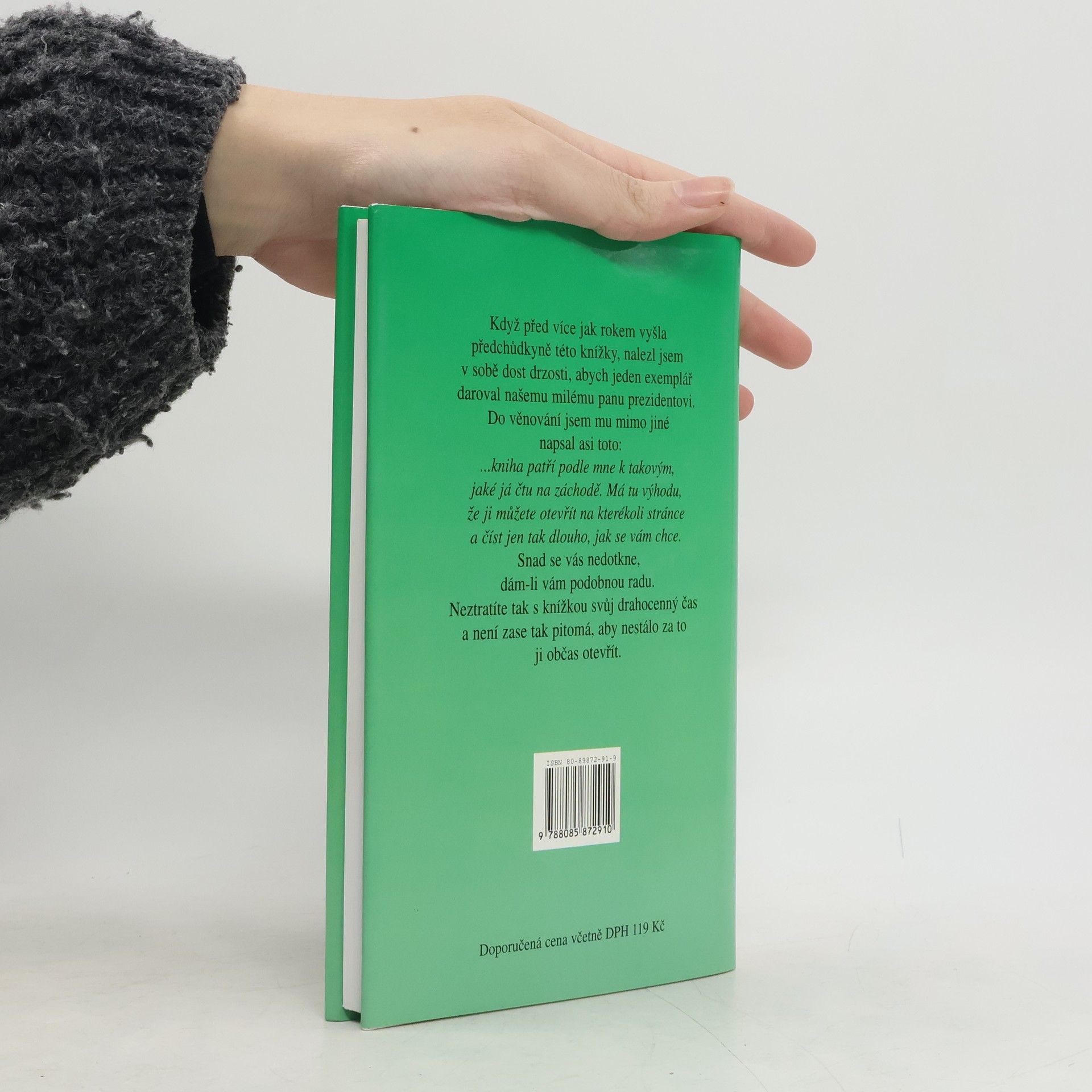 Autor: Když před více jak rokem vyšla předchůdkyně této knížky, nalezl jsem v sobě dost drzosti, abych jeden exemplář daroval našemu milému panu prezidentovi s věnováním: ...kniha patří podle mne k takovým jaké já čtu na záchodě. Má tu výhodu, že ji můžete otevřít na kterékoli stránce a číst jen tak dlouho, jak se vám chce.