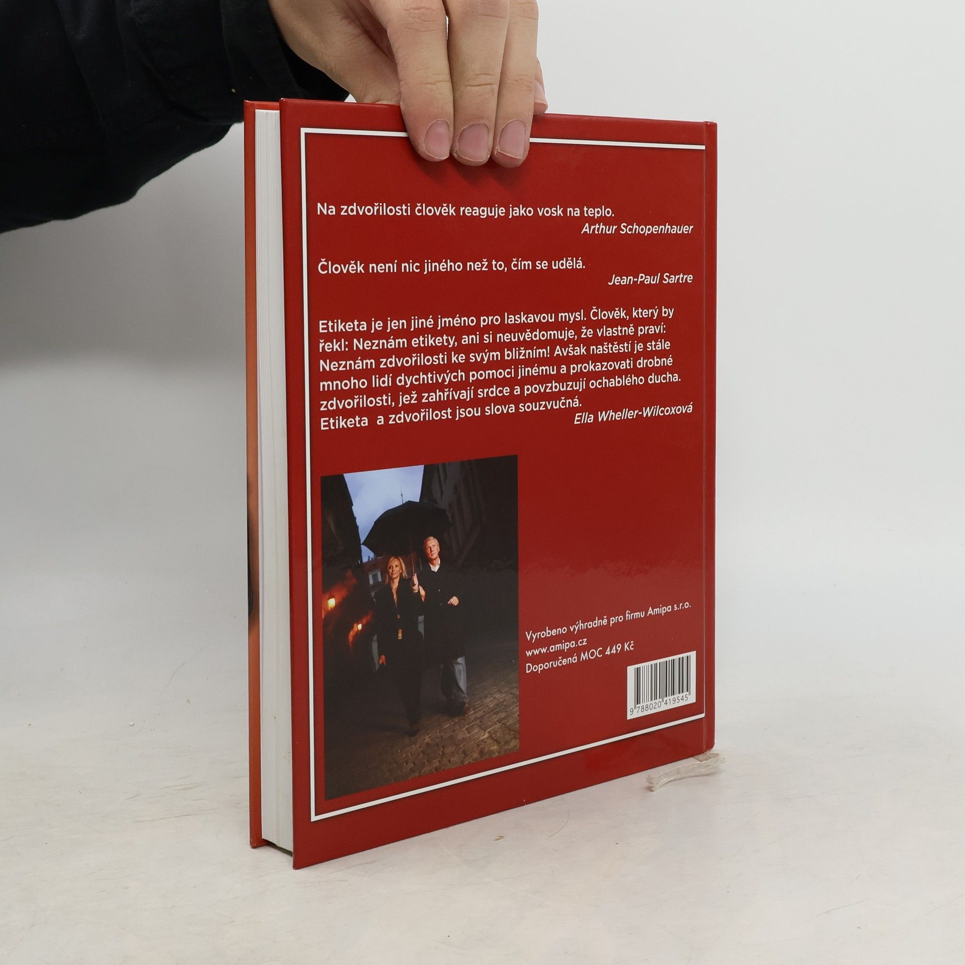 Kniha je univerzálním průvodcem různými společenskými událostmi. Seznamuje čtenáře se všemi formami společenského styku, se správným řešením společenských situací, s pravidly jednání jak doma, tak v cizině. Množstvím informací a rad překonává všechny dosud vydané příručky společenského chování. Poskytuje praktické návody, jak se chovat ve společnosti, v kanceláři, na ulici i doma, jak správně stolovat, jak se oblékat, jak se chovat na recepci, na banketu, jak připravit návštěvu ústavního činitele, jak jednat se zahraničními partnery. Vychází ze soudobého pojetí etikety a protokolu. Je nezbytnou pomůckou pro školu, úřad, firmu i rodinu. Druhé, doplněné a rozšířené vydání reaguje na změny, jimiž česká společnost prochází. Je obohaceno o nové trendy v oblékání, o další typy společenských příležitostí, o rozšířený přehled forem stolování. Kniha má oproti prvnímu vydání dvojnásobný rozsah. Doplněné a rozšířené pasáže přivítají manažeři, vedoucí pracovníci úřadů a institucí, diplomaté, učitelé, studenti a rodiče.