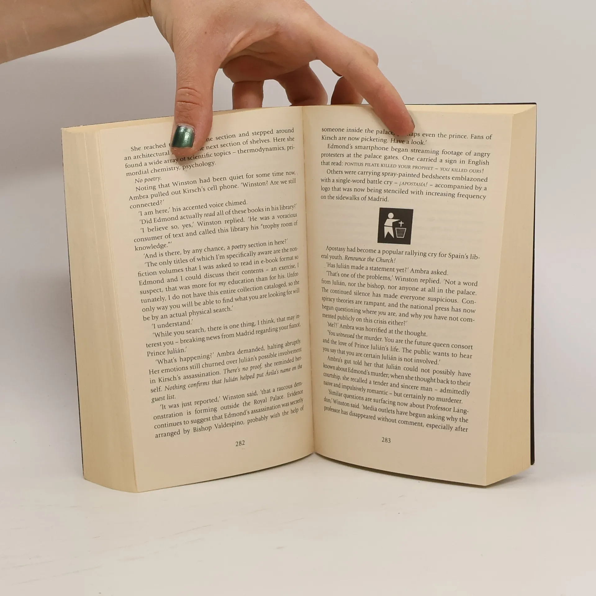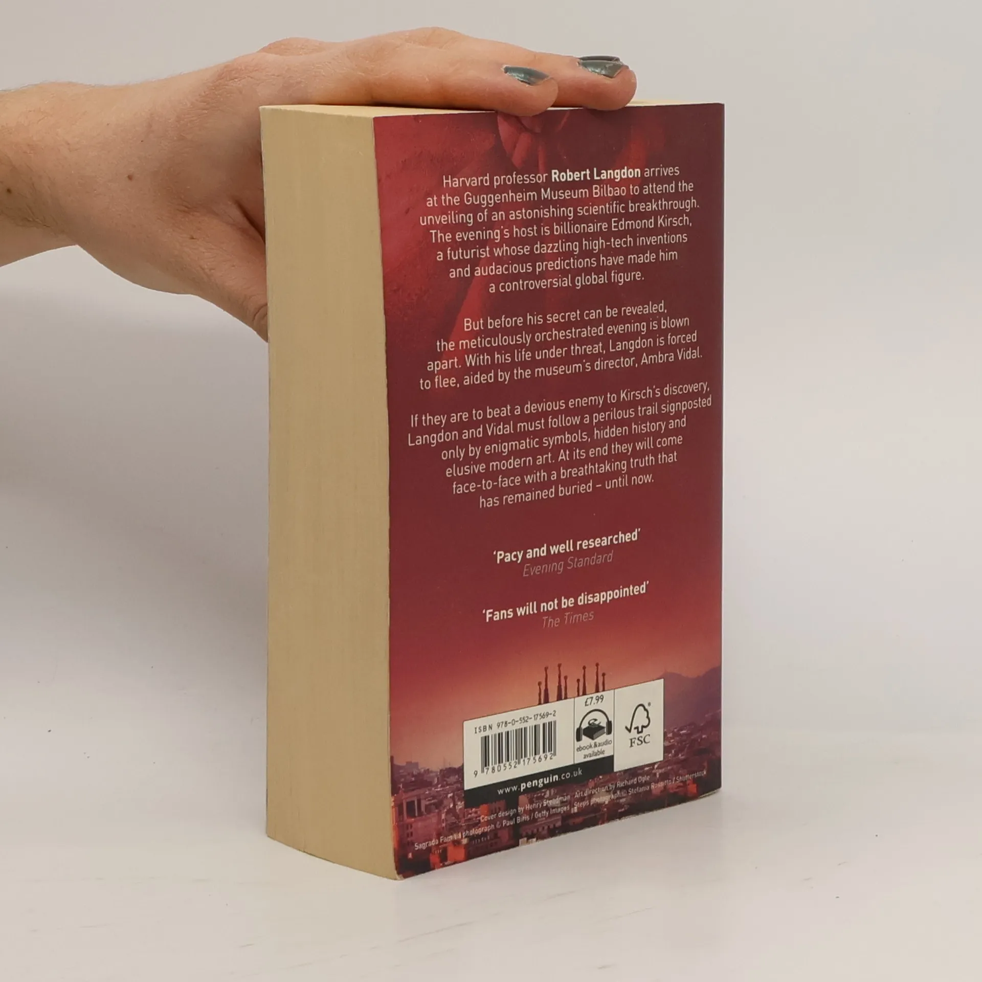 Harvard professor Robert Langdon arrives at the Guggenheim Museum Bilbao to attend the unveiling of an astonishing scientific breakthrough. The evening's host is billionaire Edmond Kirsch, a futurist whose dazzling high-tech inventions and audacious predictions have made him a controversial global figure. But before his secret can be revealed, the meticulously orchestrated evening is blown apart. With his life under threat, Langdon is forced to flee, aided by the museum's director, Ambra Vidal. If they are to beat a devious enemy to Kirsch's discovery, Langdon and Vidal must follow a perilous trail. signposted only by enigmatic symbols, hidden history and elusive modern art. At its end they will come face-to-face with a breathtaking truth that has remained buried - until now.