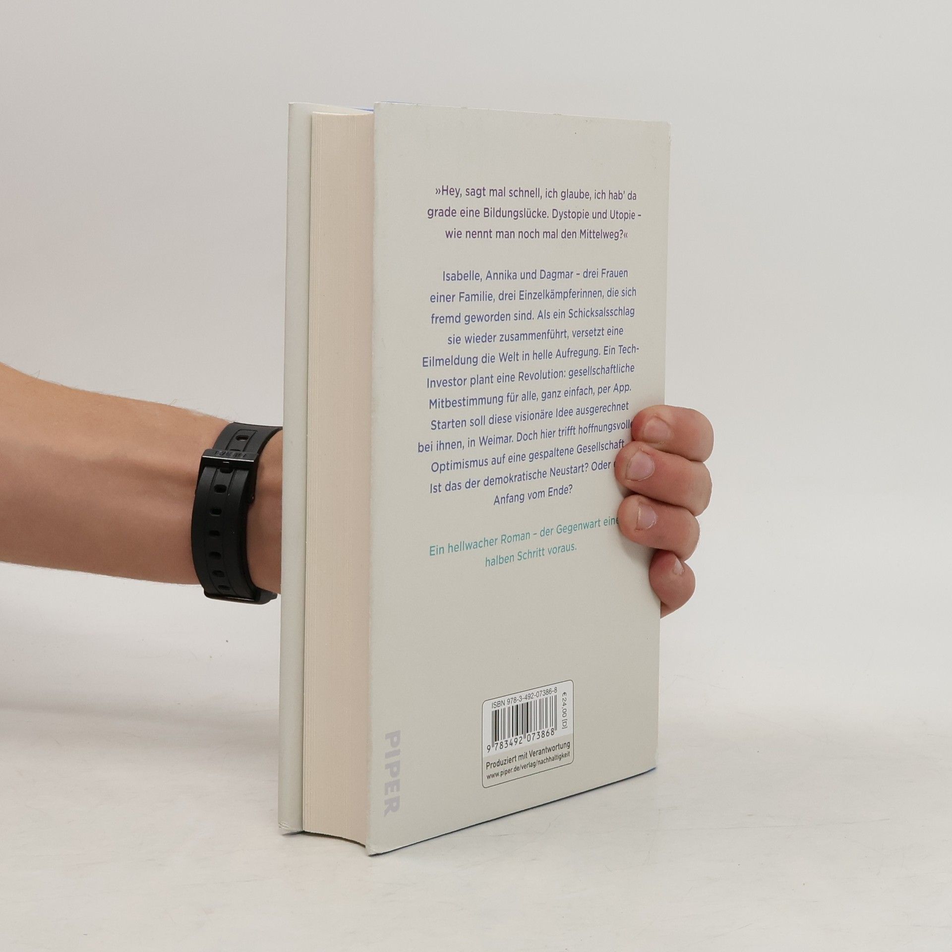 Eine entzweite Familie, ein gespaltenes Land, ein Tech-Milliardär und seine Vision von Gesellschaft Isabelle und Annika haben verlernt, miteinander zu sprechen. Nun, am Sterbebett ihrer Mutter, müssen sie es tun. Auch ihre Tante Dagmar ist da. Drei Frauen, drei Einzelkämpferinnen. Und noch während sie sich an das Gefühl herantasten, als Familie zusammenzugehören, launcht ein internationaler Tech-Milliardär seine Idee einer revolutionär neuen Gemeinschaft. Er will der Gesellschaft ein Update verpassen. Per App. Und alle können sich dabei einbringen. Der Start für das Projekt soll ausgerechnet hier bei ihnen sein: in Weimar. Schon Tage später sind die drei Teil einer öffentlichen Debatte. Denn was da auf sie zukommt, klingt so vielversprechend wie rätselhaft. Ist das der Neustart für die Demokratie? Oder der Anfang vom Ende?
