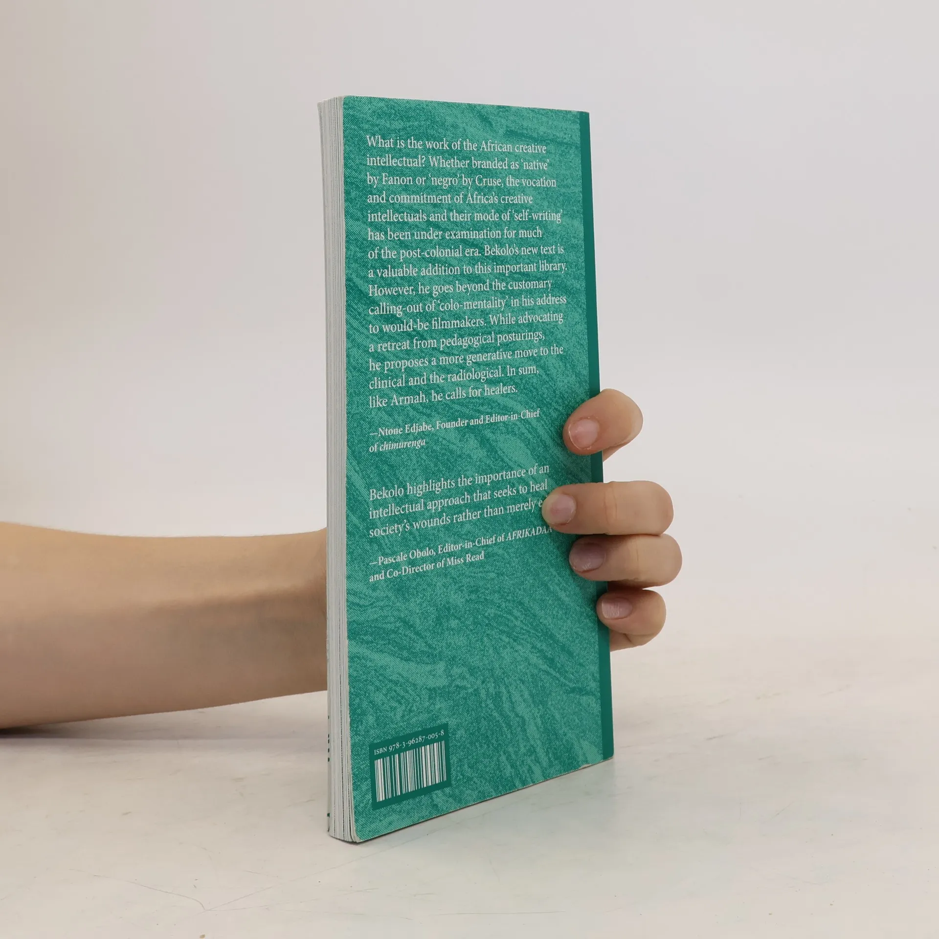 What is the work of the African creative intellectual? Whether branded as ‘native’ by Fanon or ‘negro’ by Cruse, the vocation and commitment of Africa’s creative intellectuals and their mode of ‘self-writing’ has been under examination for much of the post-colonial era. Bekolo’s new text is a valuable addition to this important library. However, he goes beyond the customary calling-out of ‘colo-mentality’ in his address to would-be filmmakers. While advocating a retreat from pedagogical posturings, he proposes a more generative move to the clinical and the radiological. In sum, like Armah, he calls for healers. — Ntone Edjabe, Founder and Editor-in-Chief of chimurengaBekolo highlights the importance of an intellectual approach that seeks to heal society’s wounds rather than merely educate. — Pascale Obolo, Editor-in-Chief of AFRIKADAA and Co-Director of Miss Read