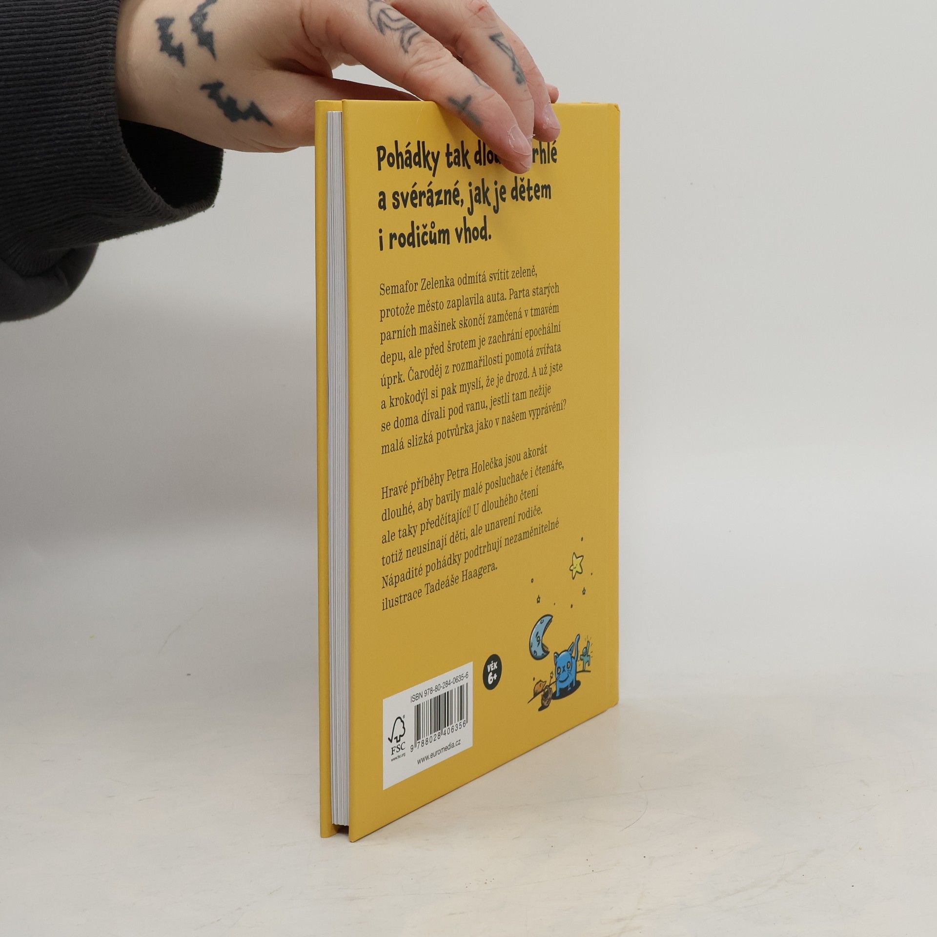 Pohádky tak dlouhé, trhlé a svérázné, jak je dětem i rodičům vhod. Semafor Zelenka odmítá svítit zeleně, protože město zaplavila auta. Parta starých parních mašinek skončí zamčená v tmavém depu, ale před šrotem je zachrání epochální úprk. Čaroděj z rozmařilosti pomotá zvířata a krokodýl si pak myslí, že je drozd. A už jste se doma dívali pod vanu, jestli tam nežije malá slizká potvůrka jako v našem vyprávění? Hravé příběhy Petra Holečka jsou akorát dlouhé, aby bavily malé posluchače i čtenáře, ale taky předčítající! U dlouhého čtení totiž neusínají děti, ale unavení rodiče. Nápadité pohádky podtrhují nezaměnitelné ilustrace Tadeáše Haagera.