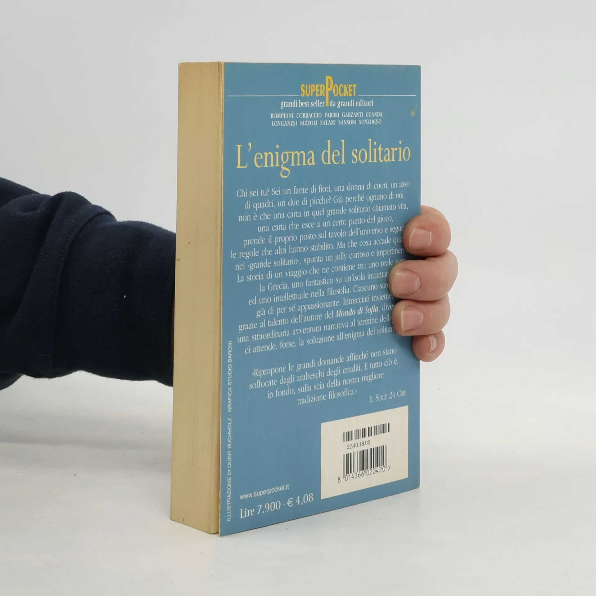 Chi sei tu? Sei un fante di fiori, una donna di cuori, una asso di quadri, un due di picche? Già perché ognuno di noi non è che una carta nel grande solitario chiamato vita, una carta che esce a un certo punto del gioco, prende il proprio posto sul tavolo dell'universo e segue le regole che altri hanno stabilito. Ma che cosa accade quando, nel "grande solitario", spunta un jolly curioso e impertinente? La storia di un viaggio che ne contiene tre: uno reale verso la Grecia, uno fantastico su un'isola incantata ed uno intellettuale nella filosofia. Ciascuno sarebbe già di per sé appassionante. Intrecciati insieme, grazie al talento dell'autore del "Mondo di Sofia", diventano una straordinaria avventura narrativa al termine della quale ci attende, forse, la soluzione all'enigma del solitario...