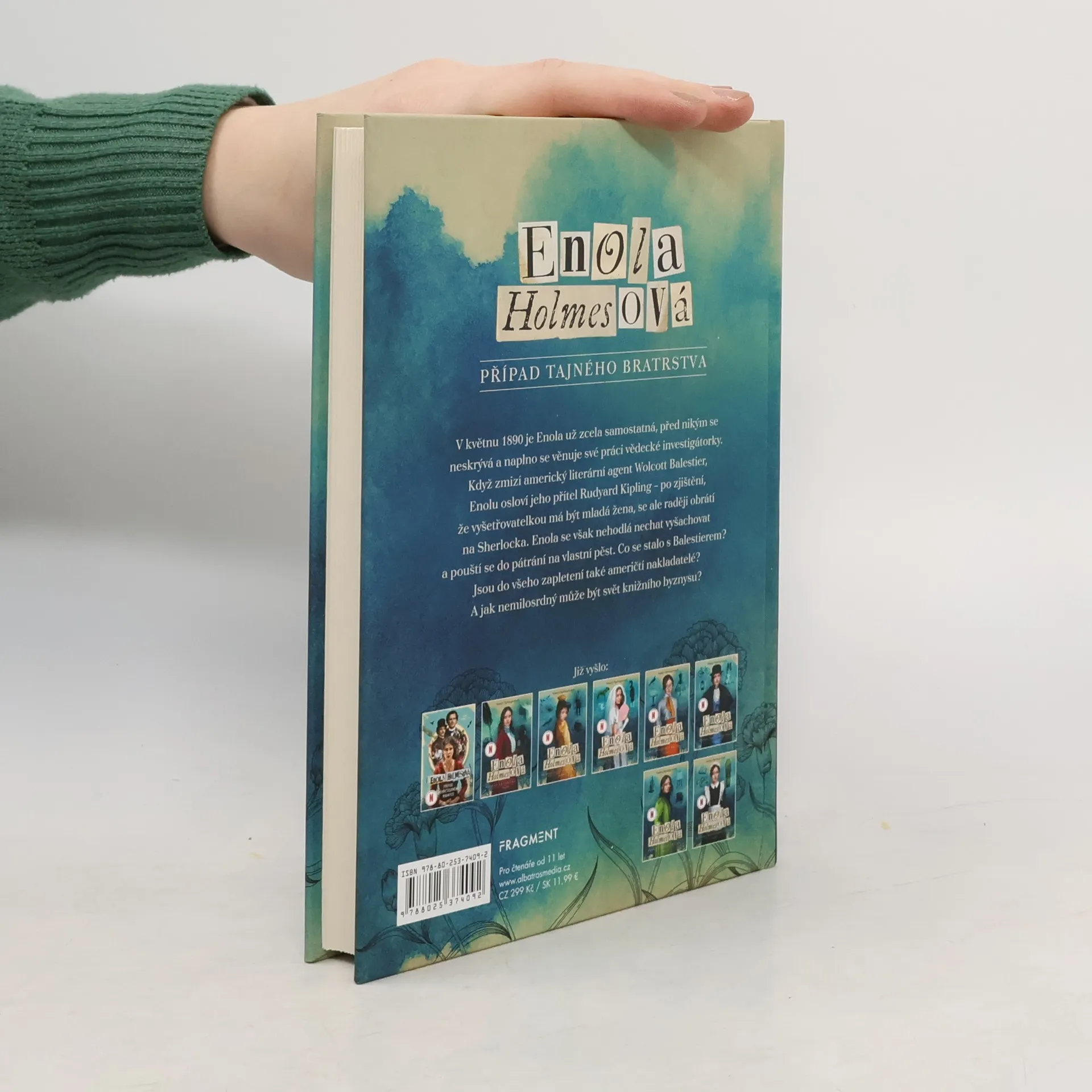 Devátý napínavý případ mladší sestry Sherlocka Holmese V květnu 1890 je Enola už zcela samostatná, před nikým se neskrývá a naplno se věnuje své práci vědecké investigátorky. Když zmizí americký literární agent Wolcott Balestier, Enolu osloví jeho přítel Rudyard Kipling – po zjištění, že vyšetřovatelkou má být mladá žena, se ale raději obrátí na Sherlocka. Enola se však nehodlá nechat vyšachovat a pouští se do pátrání na vlastní pěst. Co se stalo s Balestierem? Jsou do všeho zapletení také američtí nakladatelé? A jak nemilosrdný může být svět knižního byznysu?