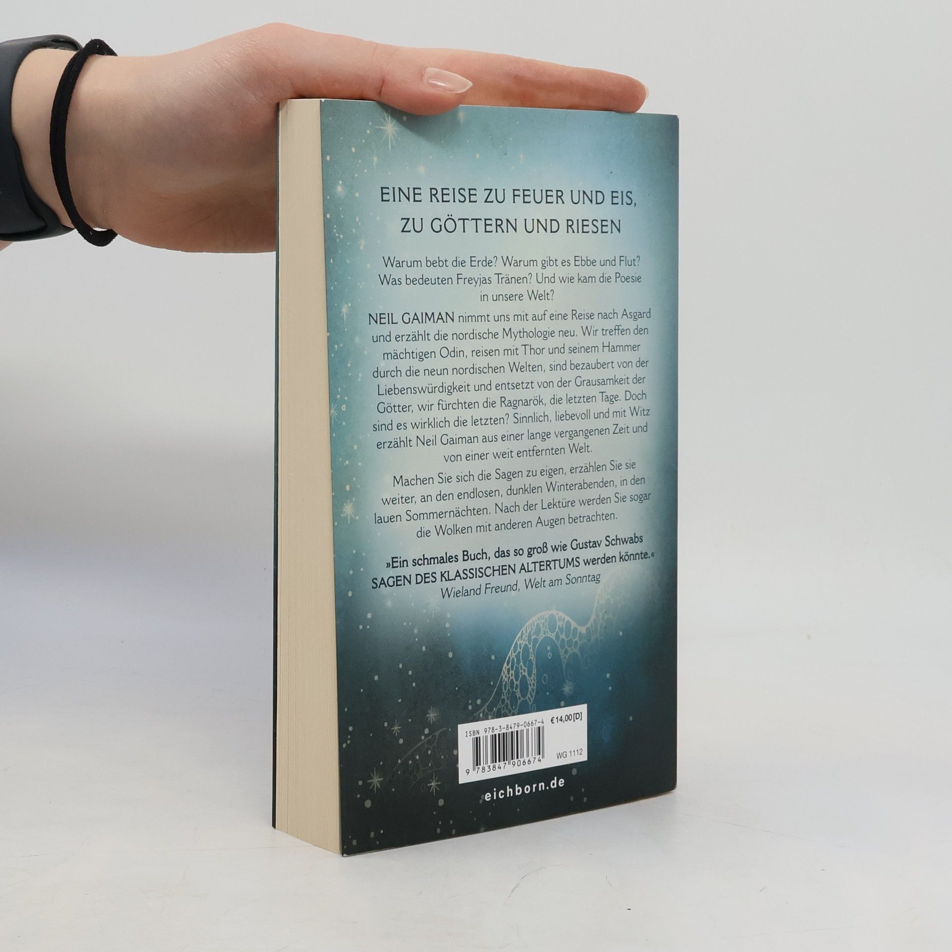 Warum bebt die Erde? Wie kam die Poesie in unsere Welt? Neil Gaiman erzählt die nordische Mythologie neu, mit Witz und Sinnlichkeit, voller Zuneigung und Neugierde. Wir treffen den mächtigen Odin, reisen mit Thor und seinem Hammer durch die nordischen Welten, sind bezaubert und entsetzt von den Göttern. Machen Sie sich die Sagen zu eigen, erzählen Sie sie weiter, an den langen Winterabenden, in den lauen Sommernächten. Nach der Lektüre werden Sie selbst die Wolken mit anderen Augen betrachten.