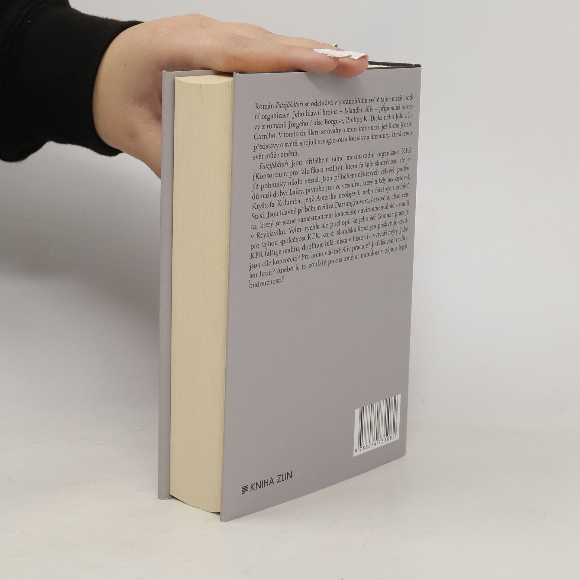 Román Falzifikátoři se odehrává v paranoidním světě tajné mezinárodní organizace. Jeho dezorientovaný hlavní hrdina – Islanďan Sliv – připomíná postavy z románů Jorgeho Luise Borgese, Philipa K. Dicka nebo Johna Le Carrého. V tomto trilleru se úvahy o moci informací, které formují naše představy o světě, spojují s magickou silou slov a literatury, která tento svět může změnit. Falzifikátoři jsou příběhem tajné mezinárodní organizace CFR (Konsorcium pro falzifikaci reality), která falšuje skutečnost, ale jejíž pohnutky nikdo nezná. Jsou příběhem některých z největších podvodů naší doby: Lajky, prvního psa ve vesmíru, který nikdy neexistoval, Kryštofa Kolumba, který Ameriku neobjevil nebo falešných archívu Stasi. Jsou hlavně příběhem Sliva Dartunghuvera, čerstvého absolventa, který se stane zaměstnancem kanceláře environmentálních studií v Reykjavíku. Velmi rychle ale pochopí, že jeho šéf Gunnar pracuje pro tajnou společnost CFR, které islandská firma jen poskytuje krytí. CFR falšuje realitu, doplňuje bílá místa v historii a vytváří mýty. Jaké jsou cíle konsorcia? Pro koho vlastně Sliv pracuje? Je falšování reality jen hrou? Anebo je to zoufalý pokus změnit minulost v zájmu lepší budoucnosti?