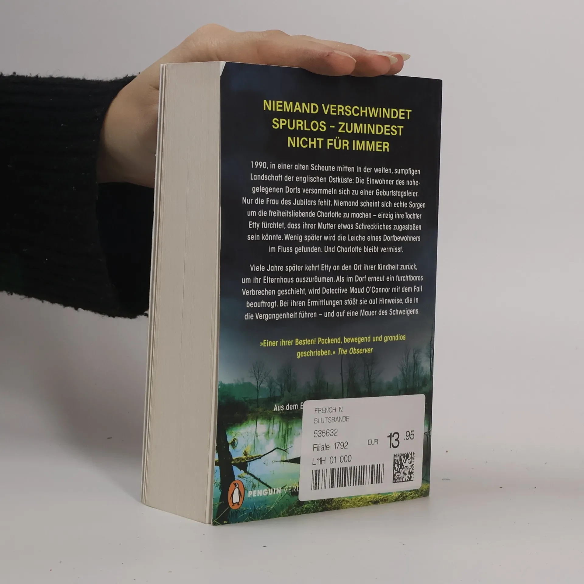 Niemand verschwindet spurlos – zumindest nicht für immer ... 1990, in einer alten Scheune mitten in der weiten, sumpfigen Landschaft der englischen Ostküste: Die Einwohner des nahegelegenen Dorfs versammeln sich zu einer Geburtstagsfeier. Nur die Frau des Jubilars fehlt. Niemand scheint sich echte Sorgen um die freiheitsliebende, impulsive Charlotte zu machen – einzig ihre Tochter Etty fürchtet, dass ihrer Mutter etwas Schreckliches zugestoßen sein könnte. Wenig später wird die Leiche eines Dorfbewohners im Fluss gefunden. Und Charlotte bleibt vermisst. Viele Jahre später kehrt Etty an den Ort ihrer Kindheit zurück, um ihr Elternhaus auszuräumen, weil der Vater in ein Pflegeheim muss. Die Ereignisse von damals haben die Familie zerrüttet. Als im Dorf erneut ein furchtbares Verbrechen geschieht, wird Detective Maud O’Connor mit dem Fall beauftragt. Bei ihren Ermittlungen stößt sie auf Hinweise, die in die Vergangenheit führen – und auf eine Mauer des Schweigens. Denn niemand hat Charlotte jemals wieder gesehen …