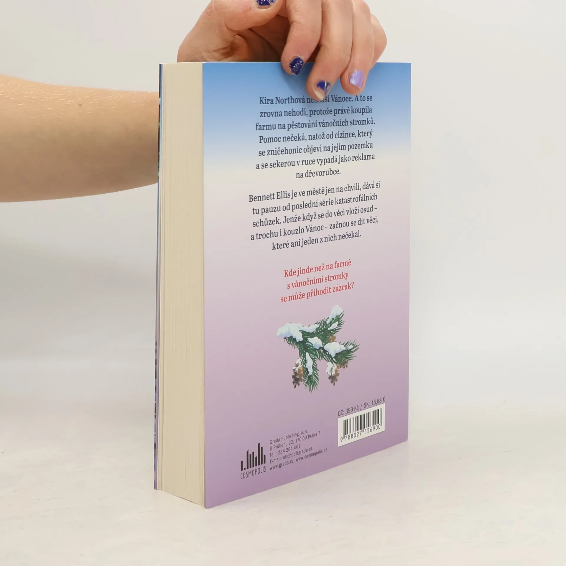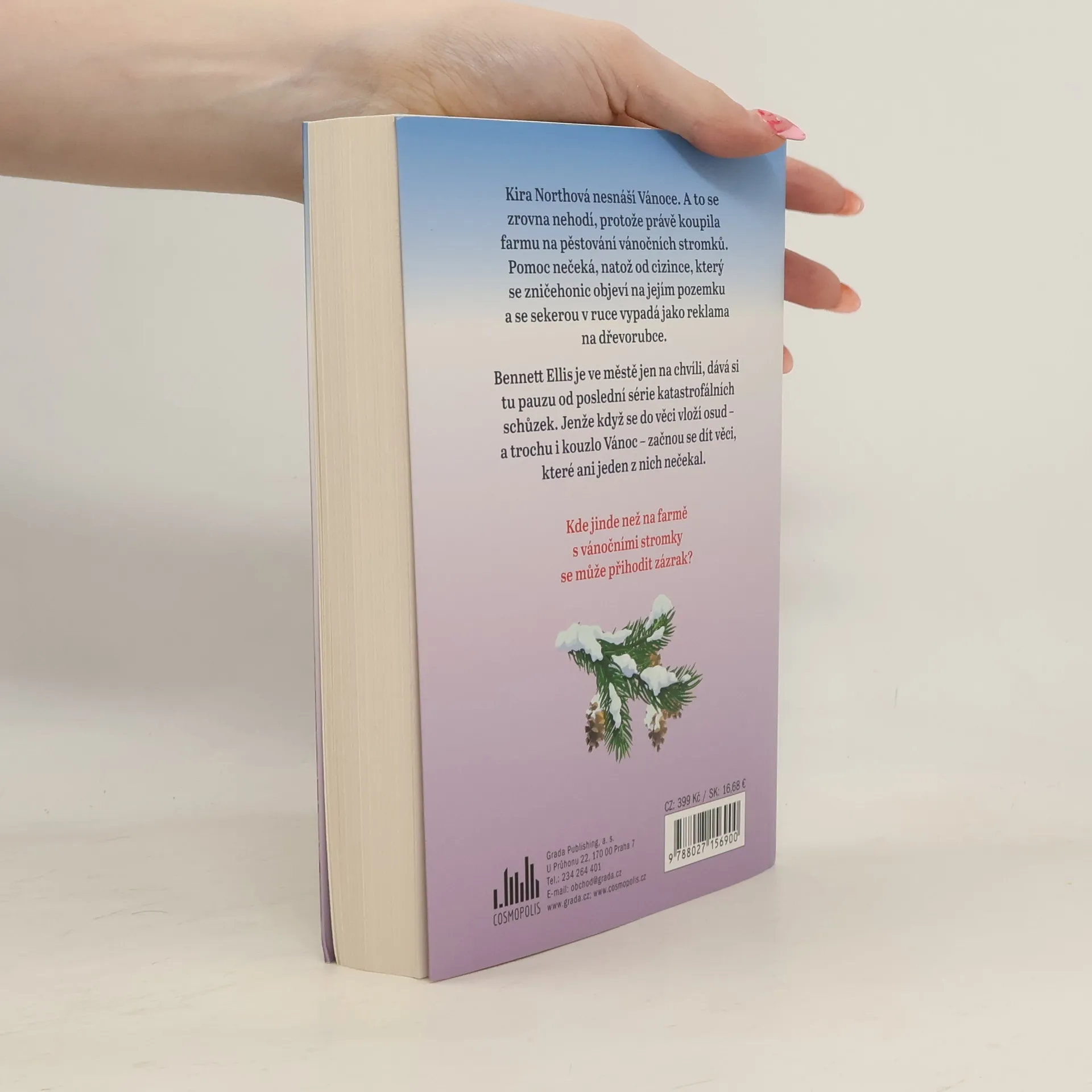 Perfektní vánoční četba pro všechny fanynky romantických feel-goodů a seriálu Gilmorova děvčata. Kira Northová nesnáší Vánoce. A to se zrovna nehodí, protože právě koupila farmu na pěstování vánočních stromků. Pomoc nečeká, natož od cizince, který se zničehonic objeví na jejím pozemku a se sekerou v ruce vypadá jako reklama na dřevorubce. Bennett Ellis je ve městě jen na chvíli, dává si tu pauzu od poslední série katastrofálních schůzek. Jenže když se do věci vloží osud – a trochu i kouzlo Vánoc – začnou se dít věci, které ani jeden z nich nečekal.