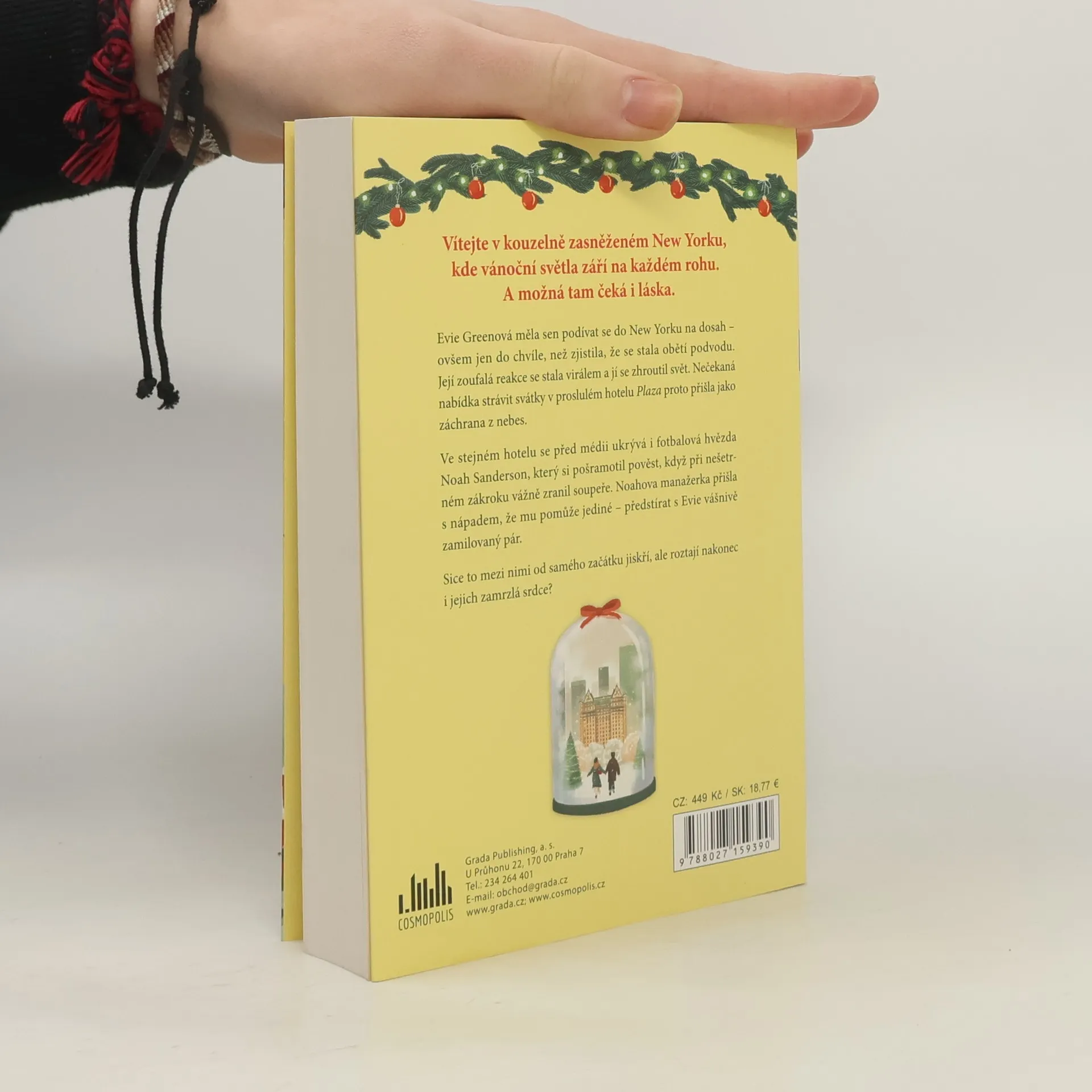 Vítejte v kouzelně zasněženém New Yorku, kde vánoční světla září na každém rohu a za jedním z?nich se skrývá láska. Evie Greenová měla svůj vánoční sen na dosah – ovšem jen do chvíle, než se její video stalo virální katastrofou. Slavný hotel se ale její nevítané popularity rozhodl využít a pozval ji do New Yorku na Vánoce, na které Evie nikdy nezapomene. Ve stejném hotelu se pokouší ukrýt i zkompromitovaná fotbalová hvězda Noah Sanderson. Bohužel neúspěšně, a tak nakonec musí spolu s Evie před kamerami předstírat vášnivě zamilovaný pár. Sice to mezi nimi jiskří, ale roztají nakonec i jejich zamrzlá srdce? První kniha nové série Vánoční útěky.