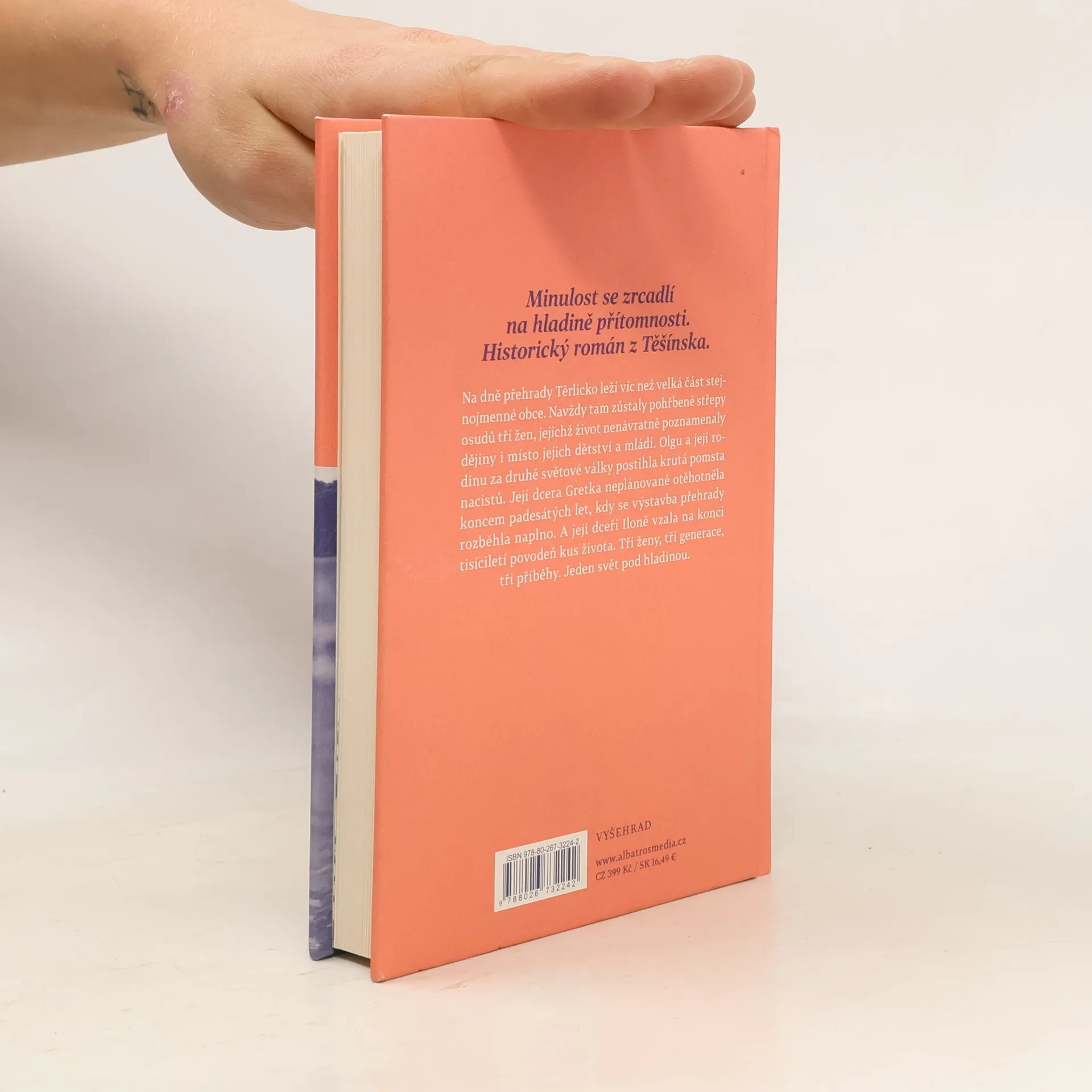 Minulost se zrcadlí na hladině přítomnosti. Historický román z Karvinska. Na dně přehrady Těrlicko leží víc než velká část stejnojmenné obce. Navždy tam zůstaly pohřbené střepy osudů tří žen, jejichž život nenávratně poznamenaly dějiny i místo jejich dětství a mládí. Olgu a její rodinu za druhé světové války postihla krutá pomsta nacistů. Její dcera Gretka neplánovaně otěhotněla koncem 50. let, kdy se výstavba přehrady rozběhla naplno. A její dceři Iloně vzala na konci tisíciletí povodeň kus života. Tři ženy, tři generace, tři příběhy. Jeden svět pod hladinou.