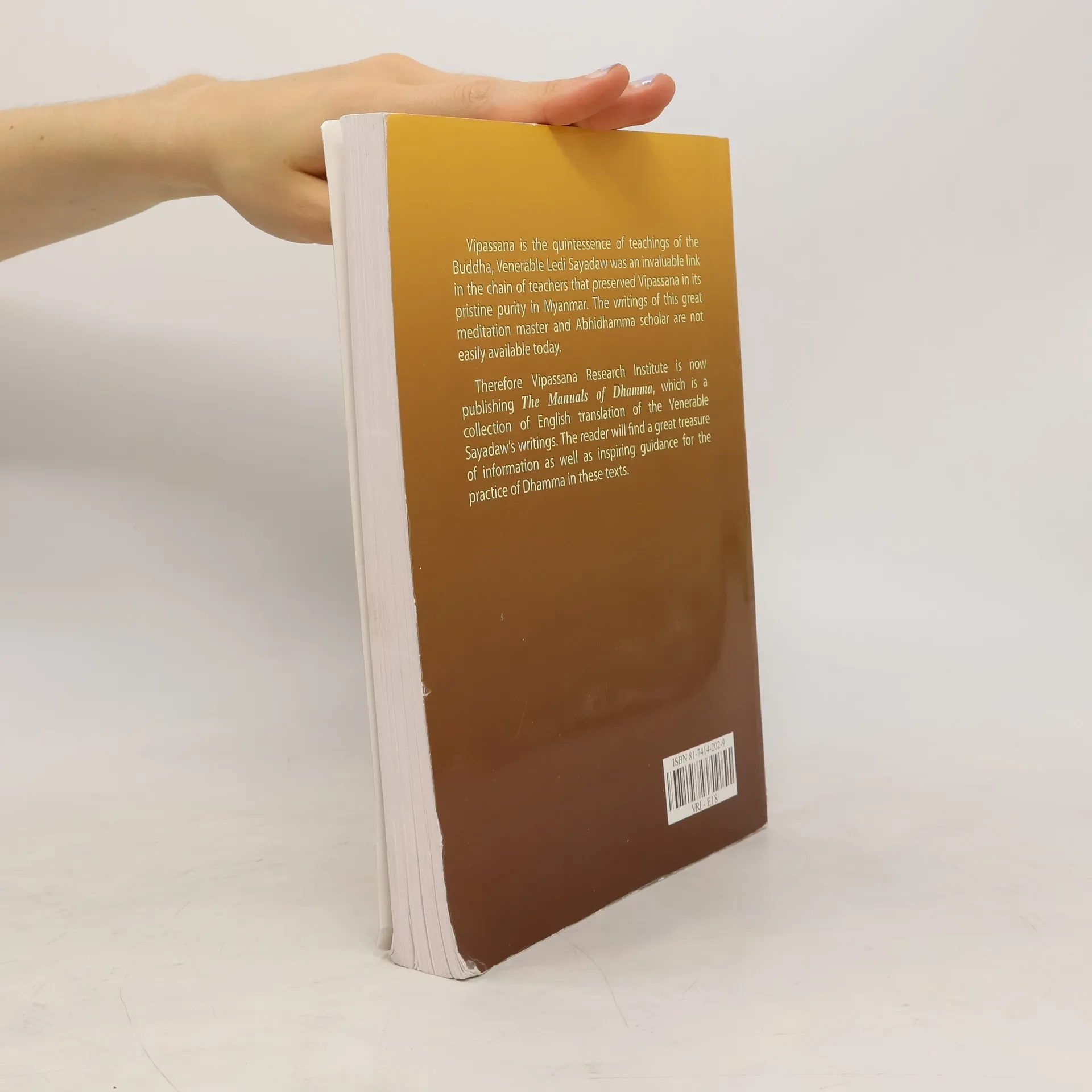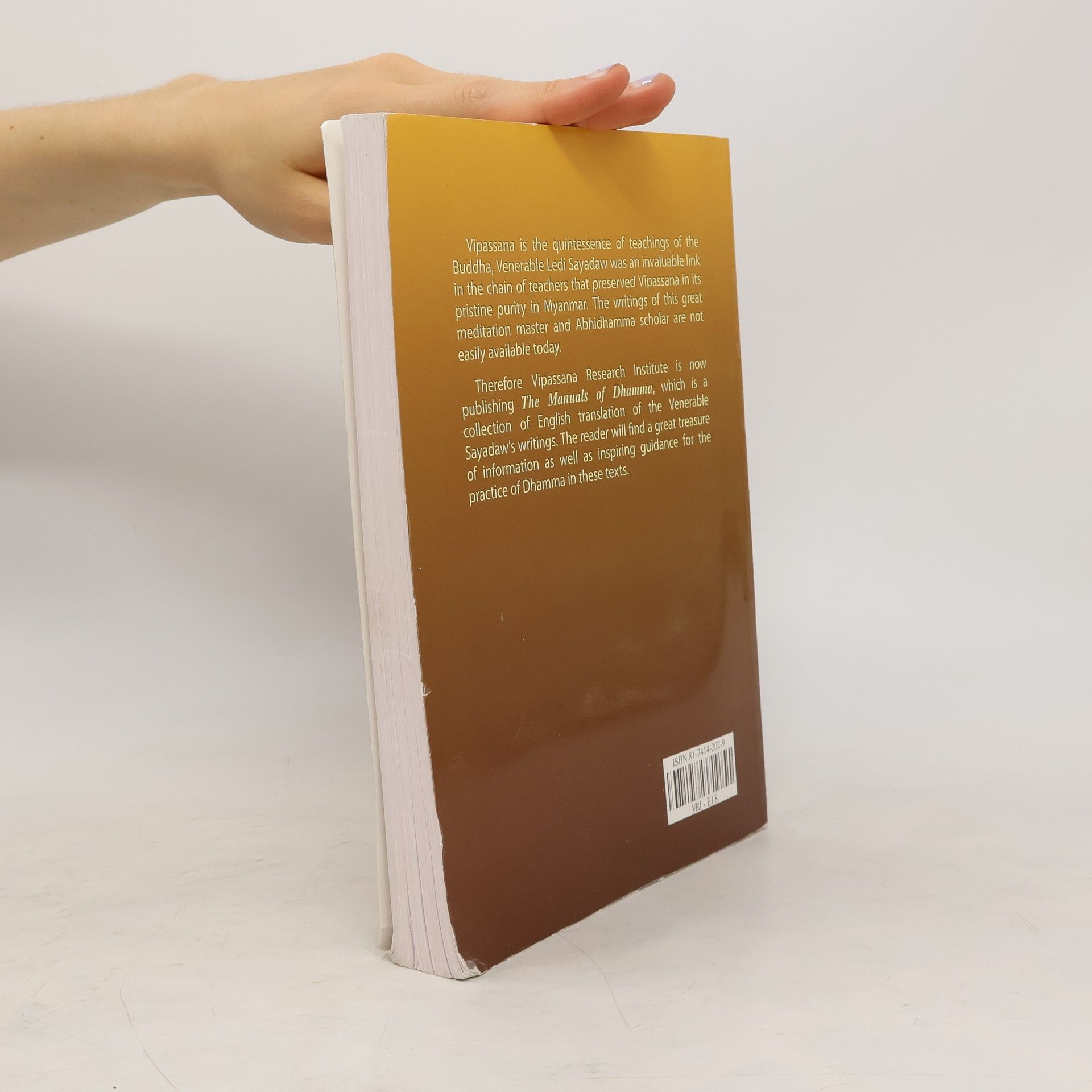 Vipassana is the quintessence of teachings of the Buddha. Venerable Ledi Sayadaw was an invaluable link in the chain of teachers that preserved Vipassana in its pristine purity in Myanmar. The writings of this great meditation master and Abhidhamma scholar are not easily available today.Therefore Vipassana Research Institute is now publishing The Manual of Dhamma, which is a collection of English translation of the Venerable Sayadaw's writings. The reader will find a great treasure of information as well as inspiring guidance for the practice of Dhamma in these texts.