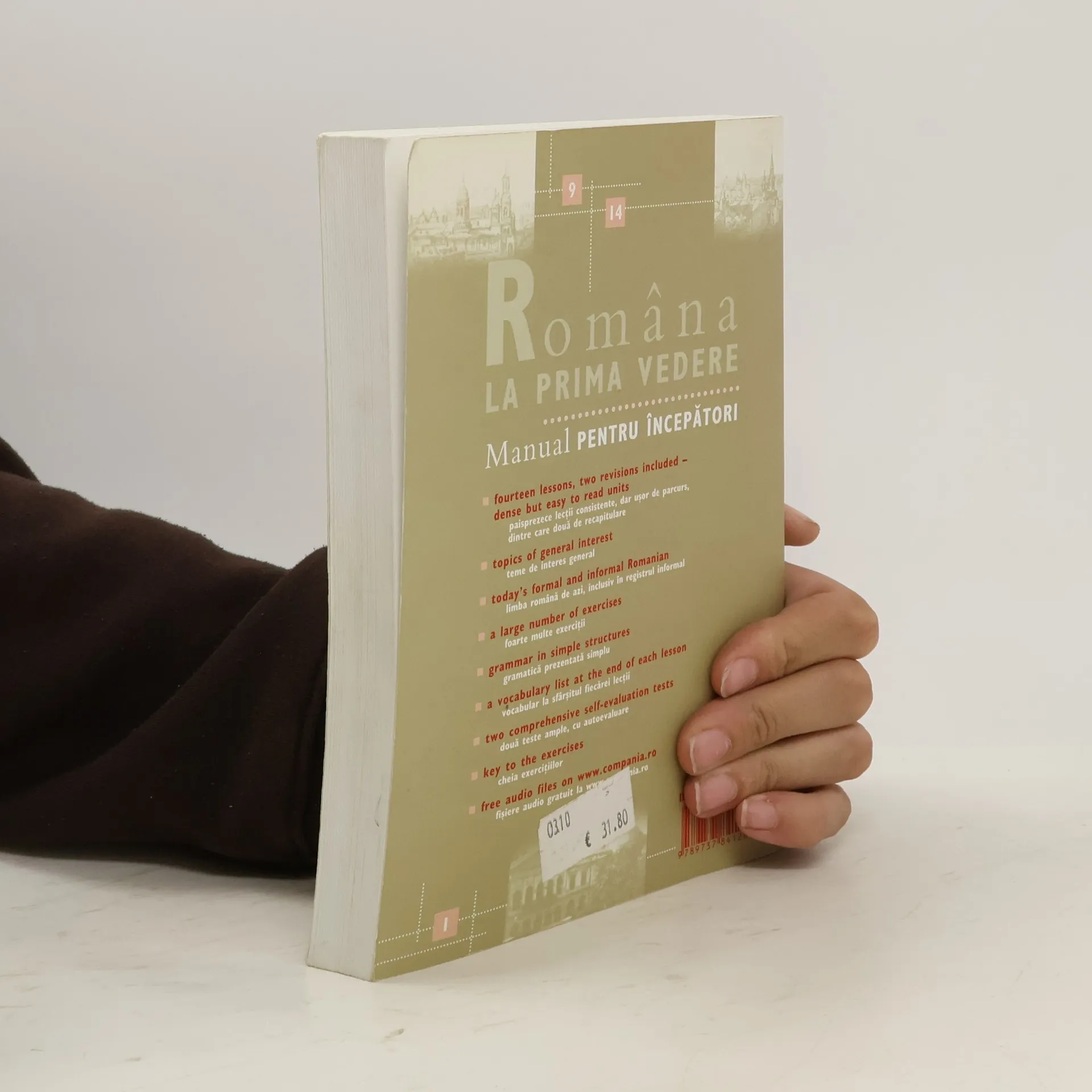 "Fourteen lessons, two revisions included - dense but easy to read units; topics of general interest; today's formal and informal Romanian; a large number of exercises; grammar in simple structures; a vocabulary list at the end of each lesson; two comprehensive self-evaluation tests; key to the exercises; free audio files on www.compania.ro".--Cover.