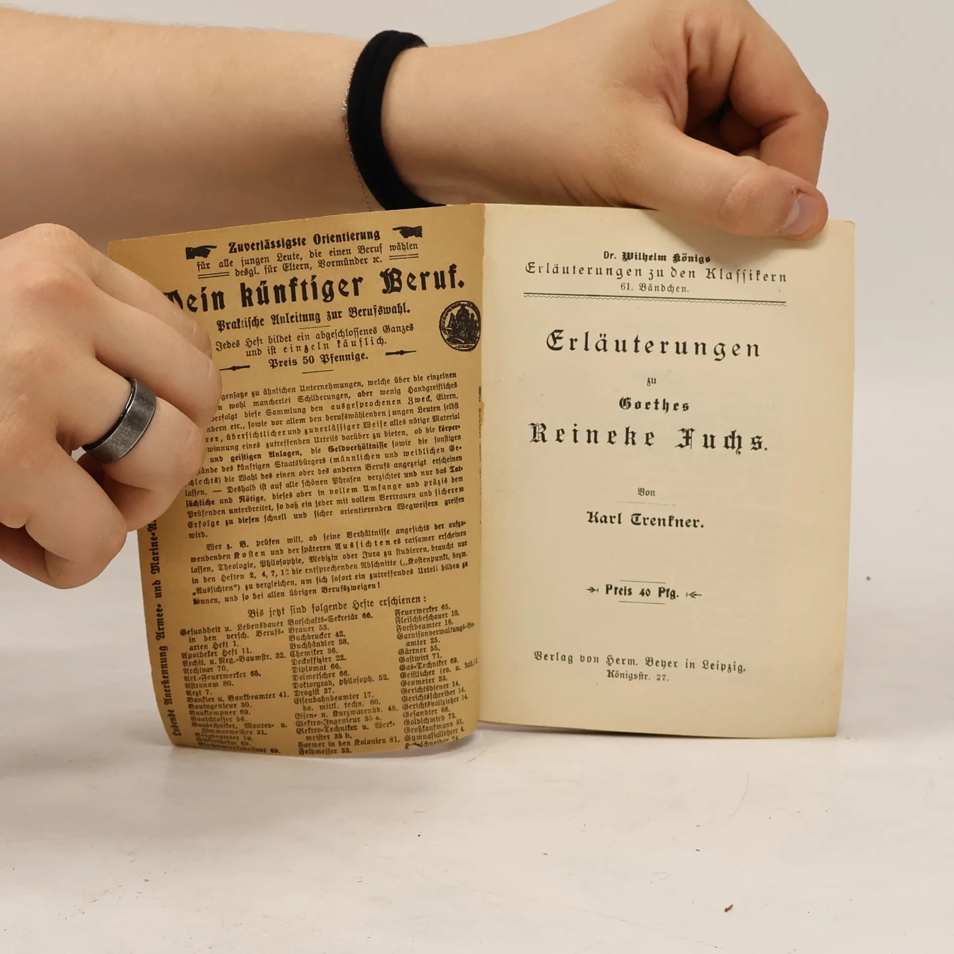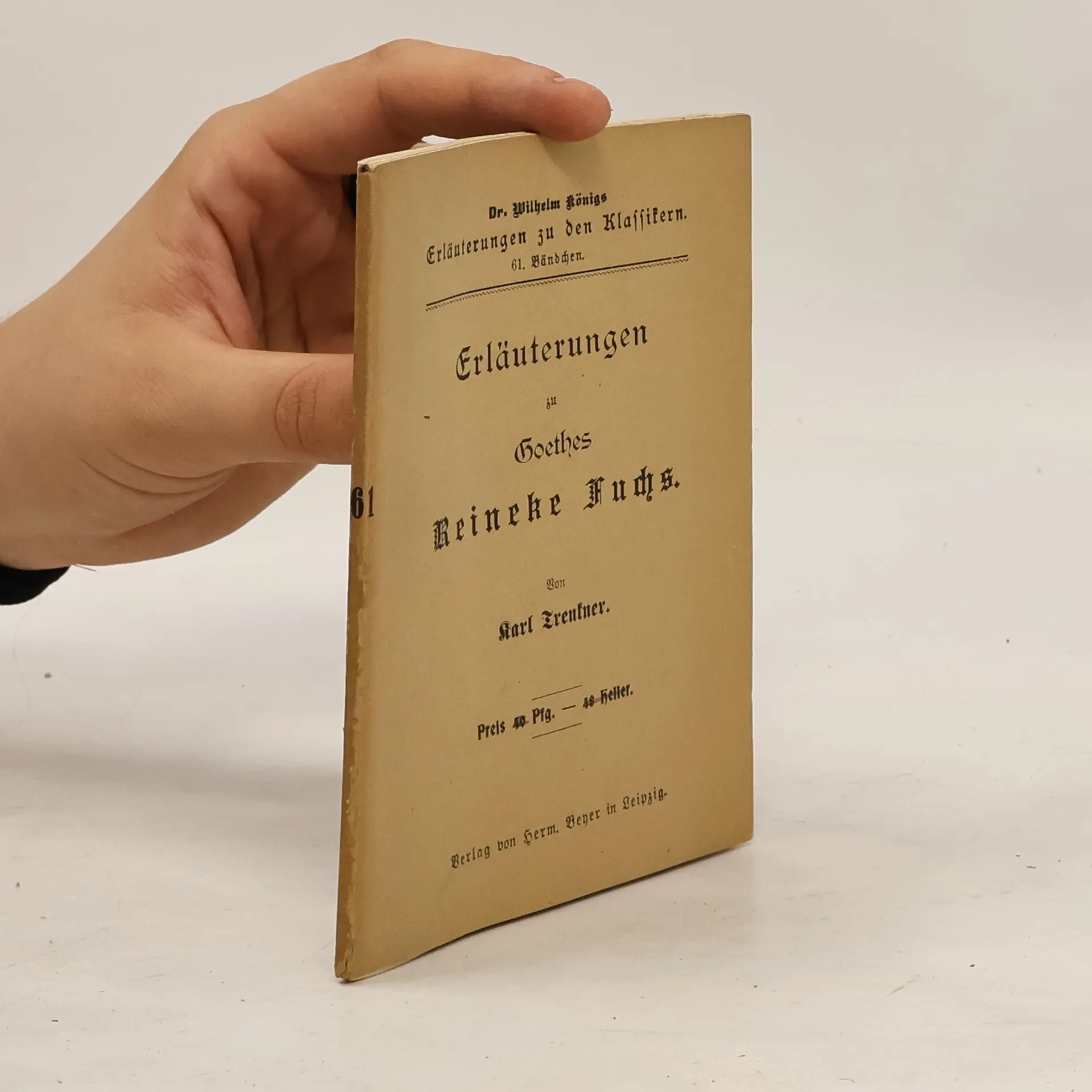 Erläuterungen zu Goethes Reineke Fuchs, Johann Wolfgang von Goethe, Karl Trenkner