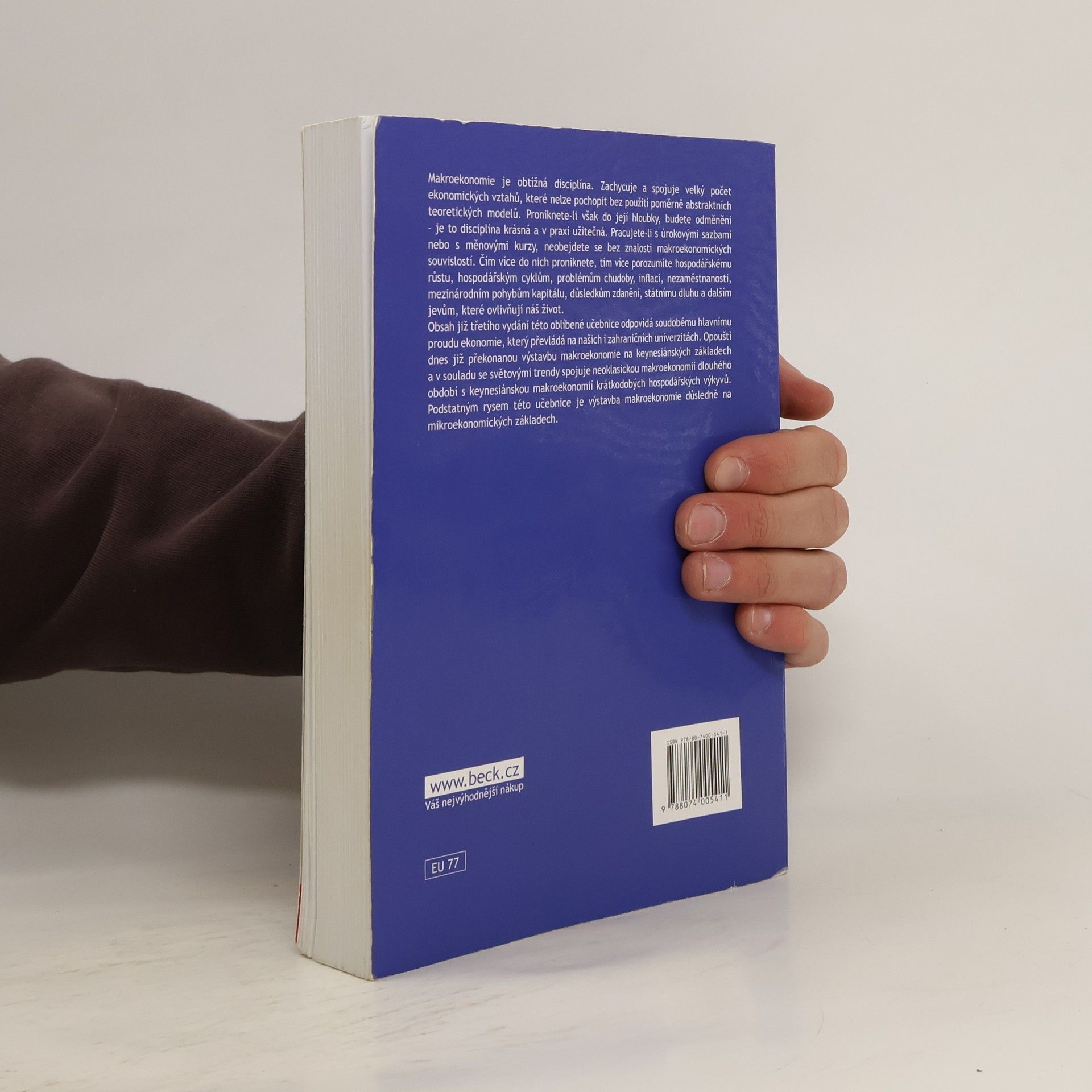 Učebnice přibližuje základní principy makroekonomie na základě současných trendů ekonomických teorií.Učební text se zaobírá základními makroekonomickými vztahy, všeobecnou rovnováhou trhů, dynamickým modelem dlouhého období, modelem krátkodobých hospodářských výkyvů a makroekonomickou politikou.