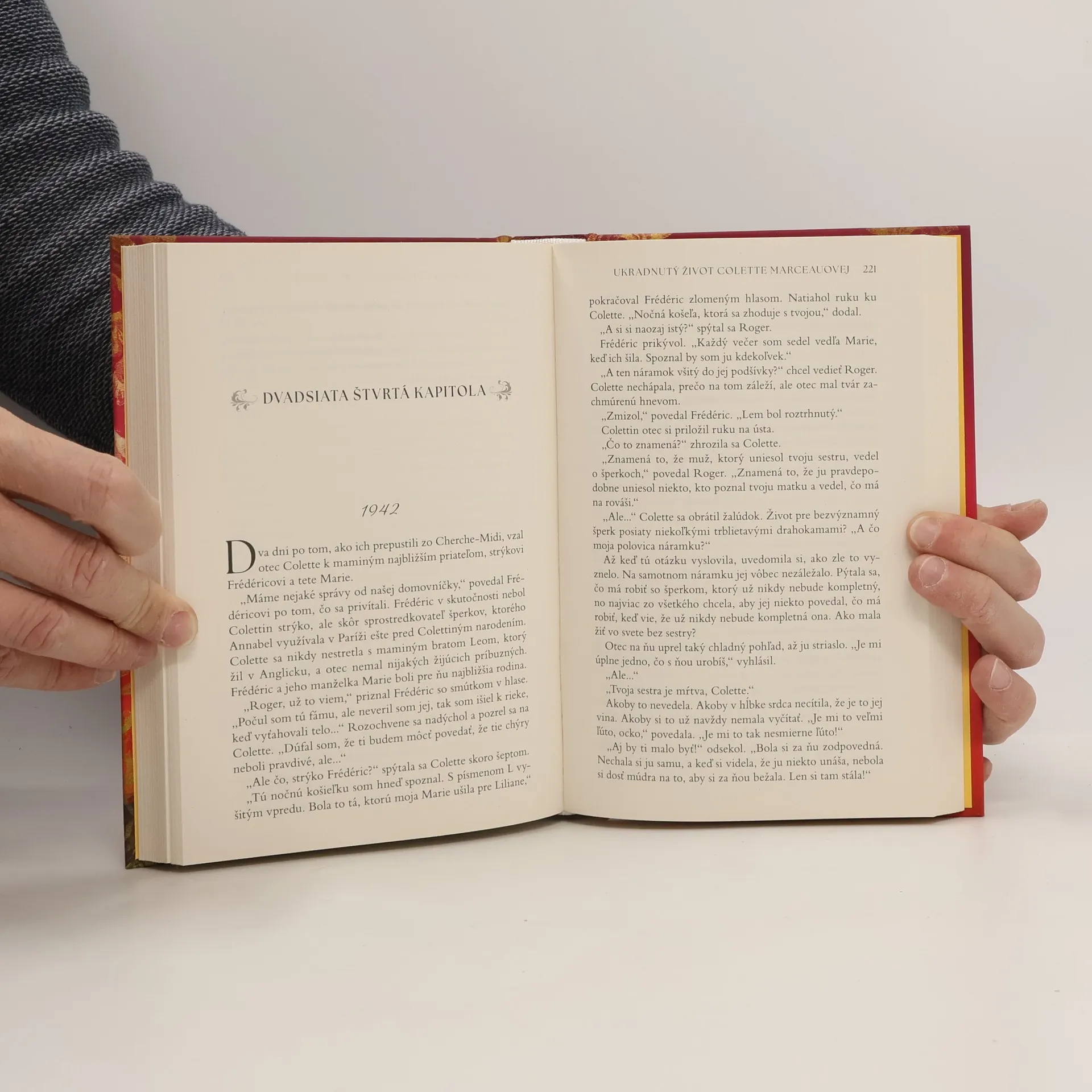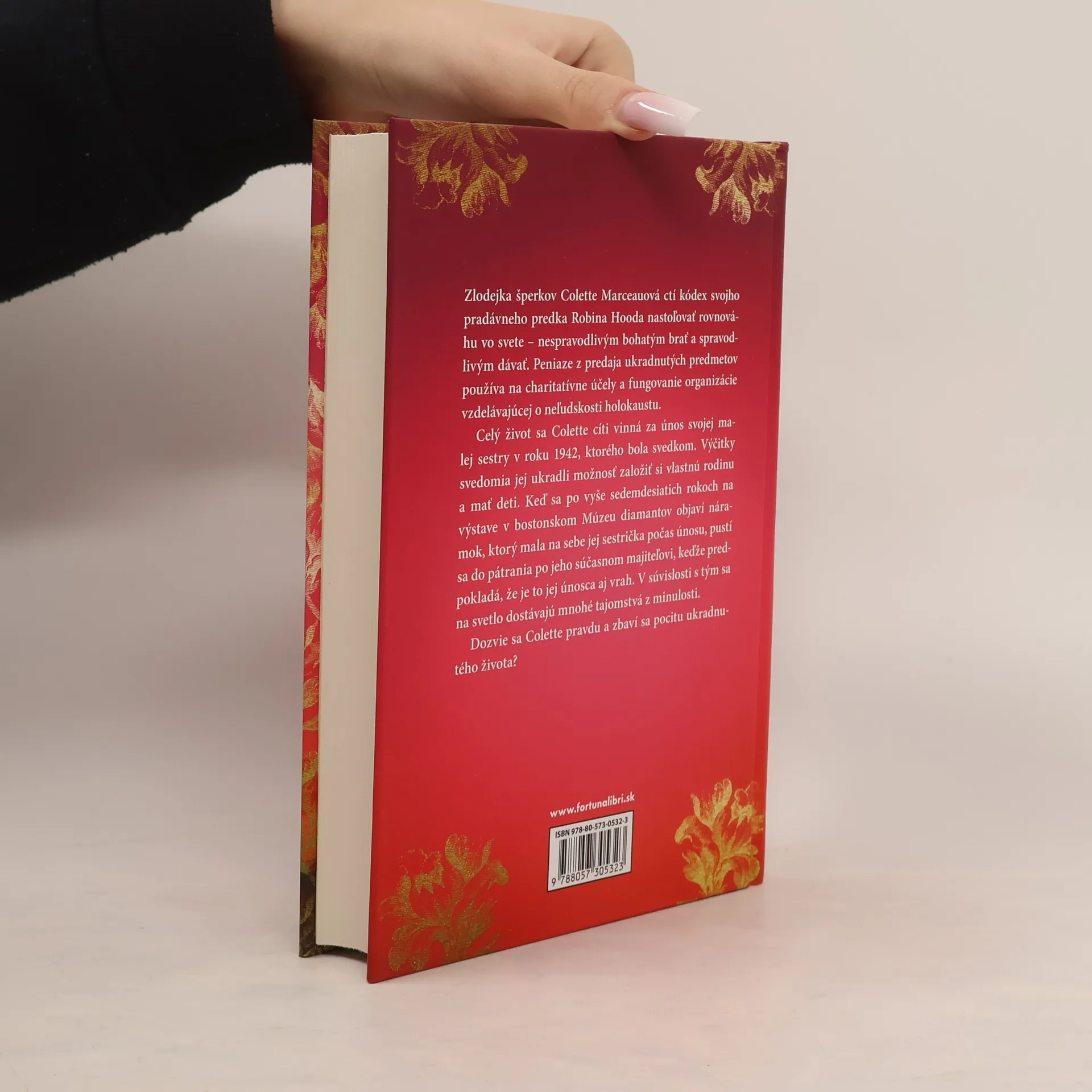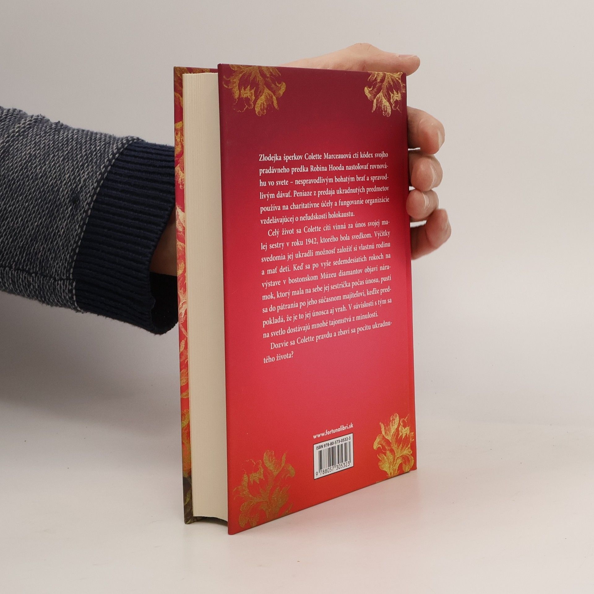 Zlodejka šperkov Colette Marceauová ctí kódex svojho pradávneho predka Robina Hooda nastoľovať rovnováhu vo svete – nespravodlivým bohatým brať a spravodlivým dávať. Peniaze z predaja ukradnutých predmetov používa na charitatívne účely a fungovanie organizácie vzdelávajúcej o neľudskosti holokaustu. Celý život sa Colette cíti vinná za únos svojej malej sestry v roku 1942, ktorého bola svedkom. Výčitky svedomia jej ukradli možnosť založiť si vlastnú rodinu a mať deti. Keď sa po vyše sedemdesiatich rokoch na výstave v bostonskom Múzeu šperkov objaví náramok, ktorý mala na sebe jej sestrička počas únosu, pustí sa do pátrania po jeho súčasnom majiteľovi, keďže predpokladá, že je to jej únosca aj vrah. V súvislosti s tým sa na svetlo dostávajú mnohé tajomstvá z minulosti. Dozvie sa Colette pravdu a zbaví sa pocitu ukradnutého života?