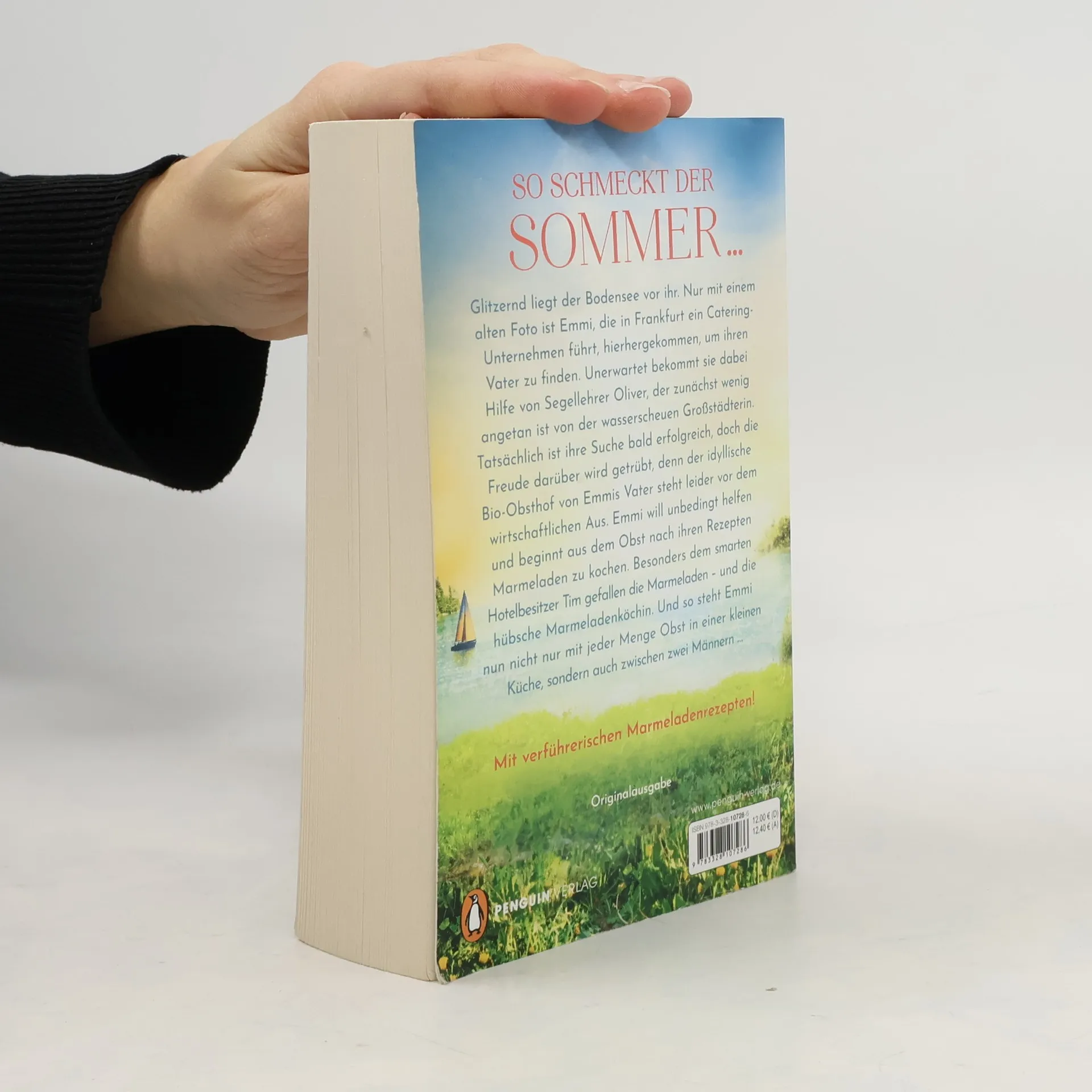 Sommer, Sonne, Seeromantik - Herzkino zum Lesen Glitzernd liegt der Bodensee vor ihr. Nur mit einem alten Foto von einem Obsthof ist Emmi, die in Frankfurt ein Catering-Unternehmen führt, hierhergekommen, um ihren Vater zu finden. Sie nimmt ein Zimmer in einer kleinen Pension am See, die einem netten älteren Ehepaar gehört. Auch wenn deren Sohn Oliver, der im Ort eine Segelschule betreibt, anfangs wenig angetan ist von der wasserscheuen Großstädterin, hilft er Emmi bei ihrer Suche. Tatsächlich finden sie ihren Vater, dessen idyllischer Bio-Obsthof leider wirtschaftlich vor dem Aus steht. Emmi will unbedingt helfen und beginnt aus dem Obst nach ihren Rezepten Marmeladen zu kochen. Besonders dem smarten Hotelbesitzer Tim gefallen die Marmeladen – und die hübsche Marmeladenköchin. Und so steht Emmi nun nicht nur mit jeder Menge Obst in der kleinen Küche der Pension, sondern auch zwischen zwei Männern … So schmeckt der Sommer: mit verführerischen Marmeladenrezepten!