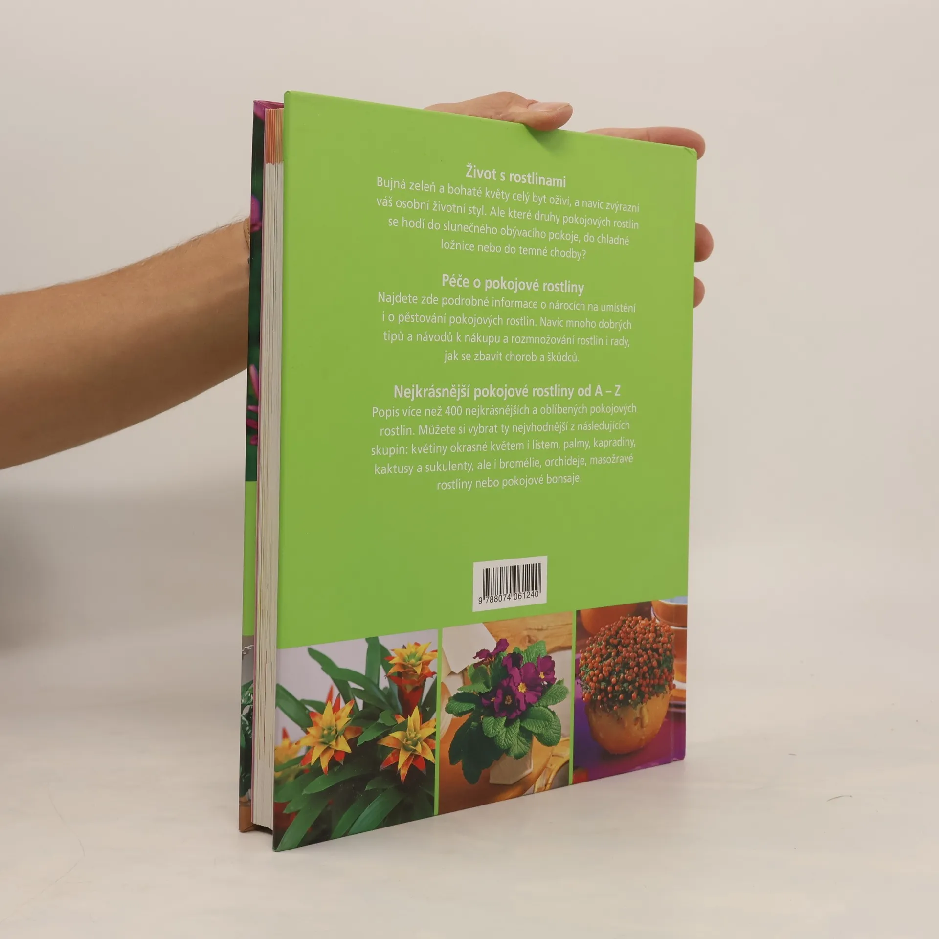 Praktické rady týkající se výběru vhodných pokojových rostlin i péče o jejich jednotlivé druhy a odrůdy ve fotografické publikaci.