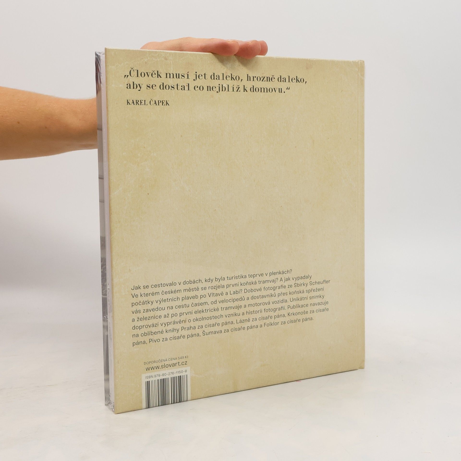 Jak se cestovalo v dobách, kdy byla turistika teprve v plenkách? Ve kterém českém městě se rozjela první koňská tramvaj? A jak vypadaly počátky výletních plaveb po Vltavě a Labi? Dobové fotografie ze Sbírky Scheufler vás zavedou na cestu časem, od velocipedů a dostavníků přes koňská spřežení a železnice až po první elektrické tramvaje a motorová vozidla. Unikátní snímky doprovází vyprávění o okolnostech vzniku a historii fotografií. Publikace navazuje na oblíbené knihy Praha za císaře pána, Lázně za císaře pána, Krkonoše za císaře pána, Pivo za císaře pána, Šumava za císaře pána a Folklor za císaře pána.