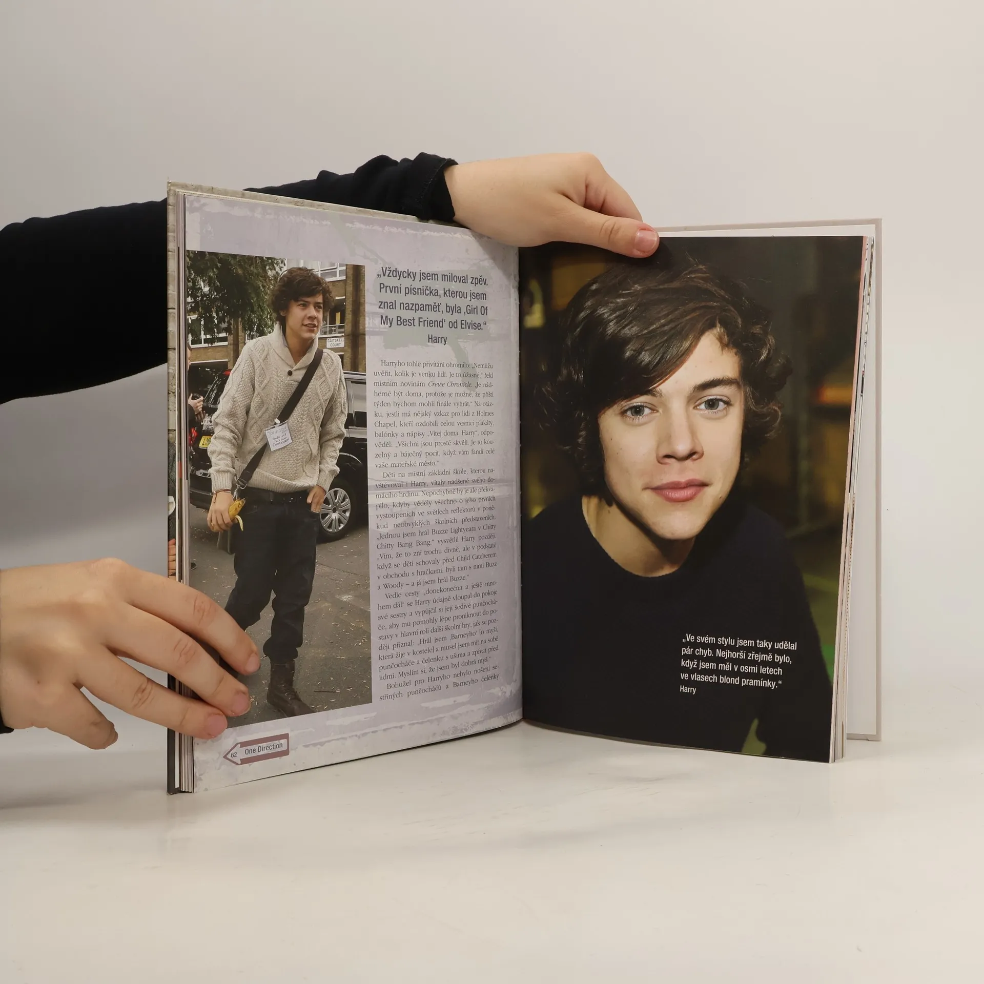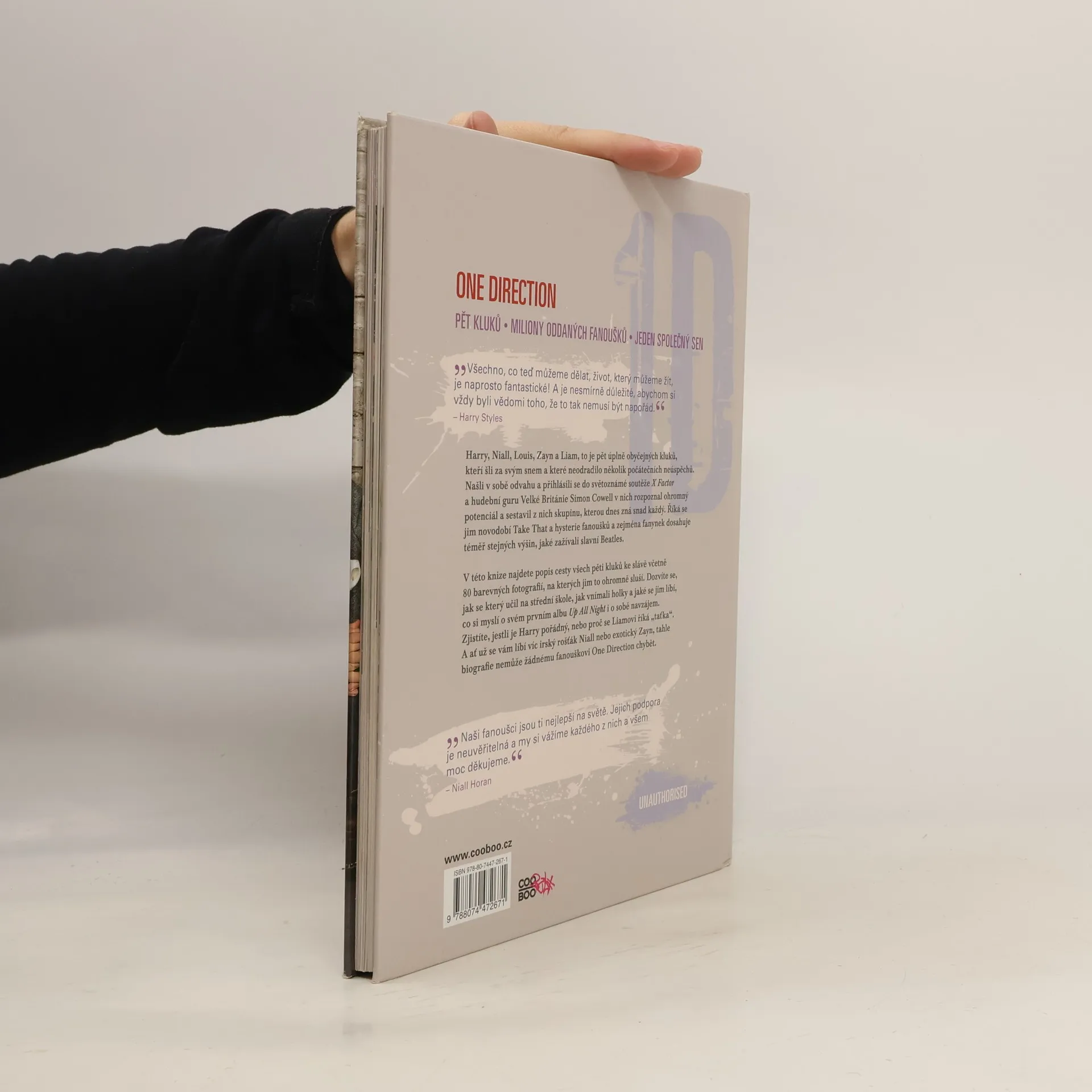 Harry, Niall, Louis, Zayn a Liam je pětice úplně obyčejných kluků, kteří šli za svým snem a které neodradilo pár prvních neúspěchů. Našli v sobě odvahu a přihlásili se do konkurzu světoznámé soutěže X Factor a hudební guru Velké Británie Simon Cowell v nich rozpoznal ohromný potenciál a sestavil z nich skupinu, kterou dnes zná snad každý. Říká se jim novodobí Take That a hysterie fanoušků a zejména fanynek dosahuje téměř stejných výšin, jaké zažívali slavní Beatles. V této knize najdete cestu všech pěti kluků ke slávě včetně 80 barevných fotografií, kde jim to ohromně sluší. Dozvíte se, jak se který učil na střední škole, jak vnímali holky a jaký typ se jim líbí, co si myslí o svém prvním albu Up All Night i o sobě navzájem. Zjistíte, jestli je Harry pořádný, nebo proč se Liamovi říká „taťka“. A ať už se vám líbí víc irský rošťák Niall nebo exotický Zayn, tahle biografie nemůže žádnému fanouškovi One Direction chybět.