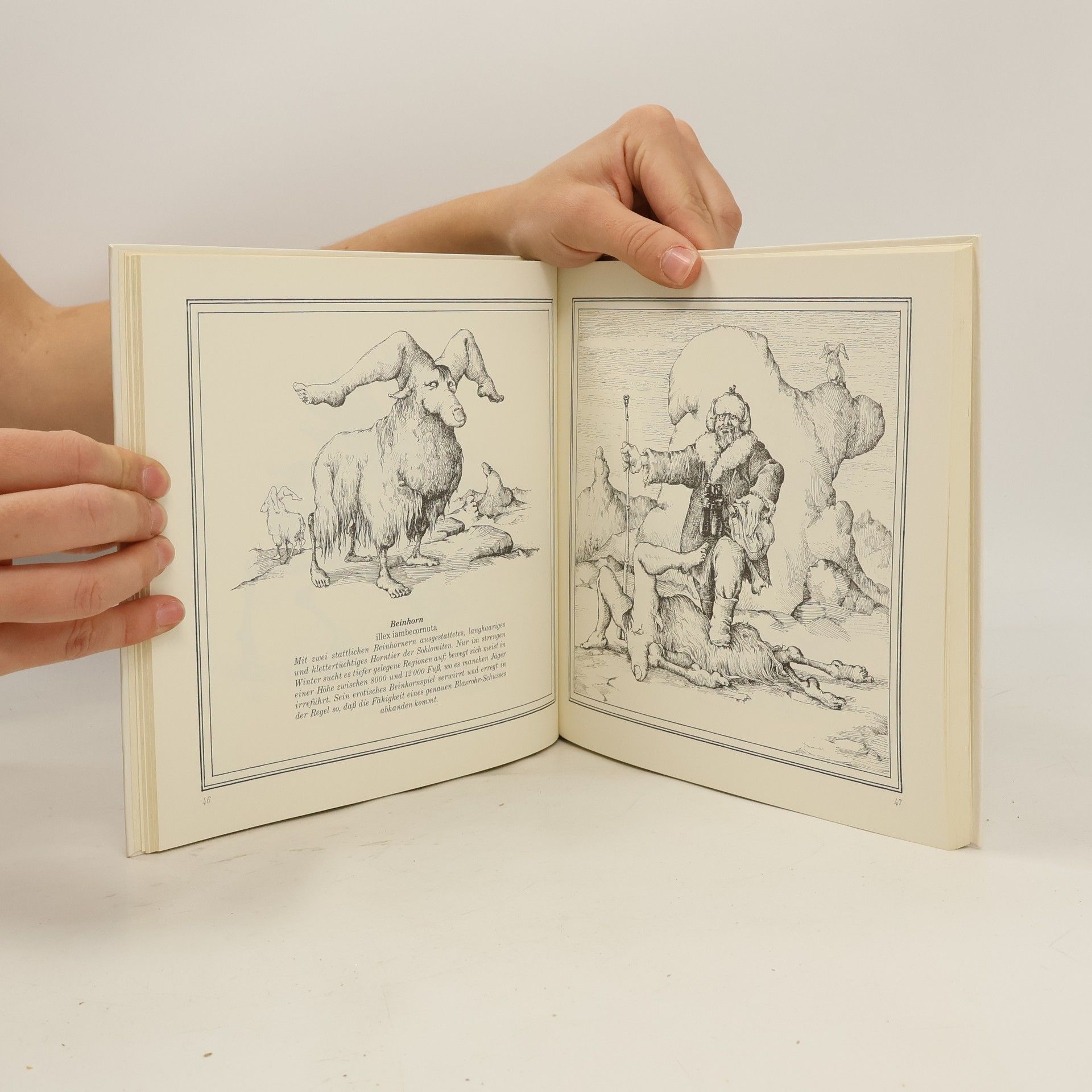 Dem Karikaturisten, dem Archäologen aus Grafittanien, ist es gelungen, Tiere und Pflanzen in ihrer natürlichen Umgebung aufzuspüren, von denen seit langem nur mehr die Namen bekannt waren. Alle werden sie sorgfältig beschrieben, ihre Lebensgewohnheiten werden skizziert, und ihre Domestizierbarkeit wird in Erwägung gezogen.