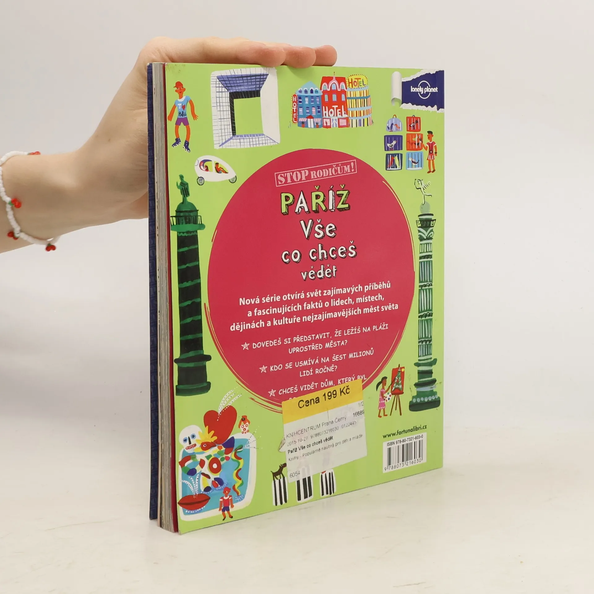 Série Stop rodičům! otvírá svět zajímavých příběhů a fascinujících faktů o lidech, místech, dějinách a kultuře nejzajímavějších měst světa. Dovedeš si představit, že ležíš na pláži uprostřed města? Kdo se usmívá na šest milionu lidí ročně? Chceš vidět dům, který byl postaven naruby? Netradiční a trochu provokativní průvodce pro náctileté.