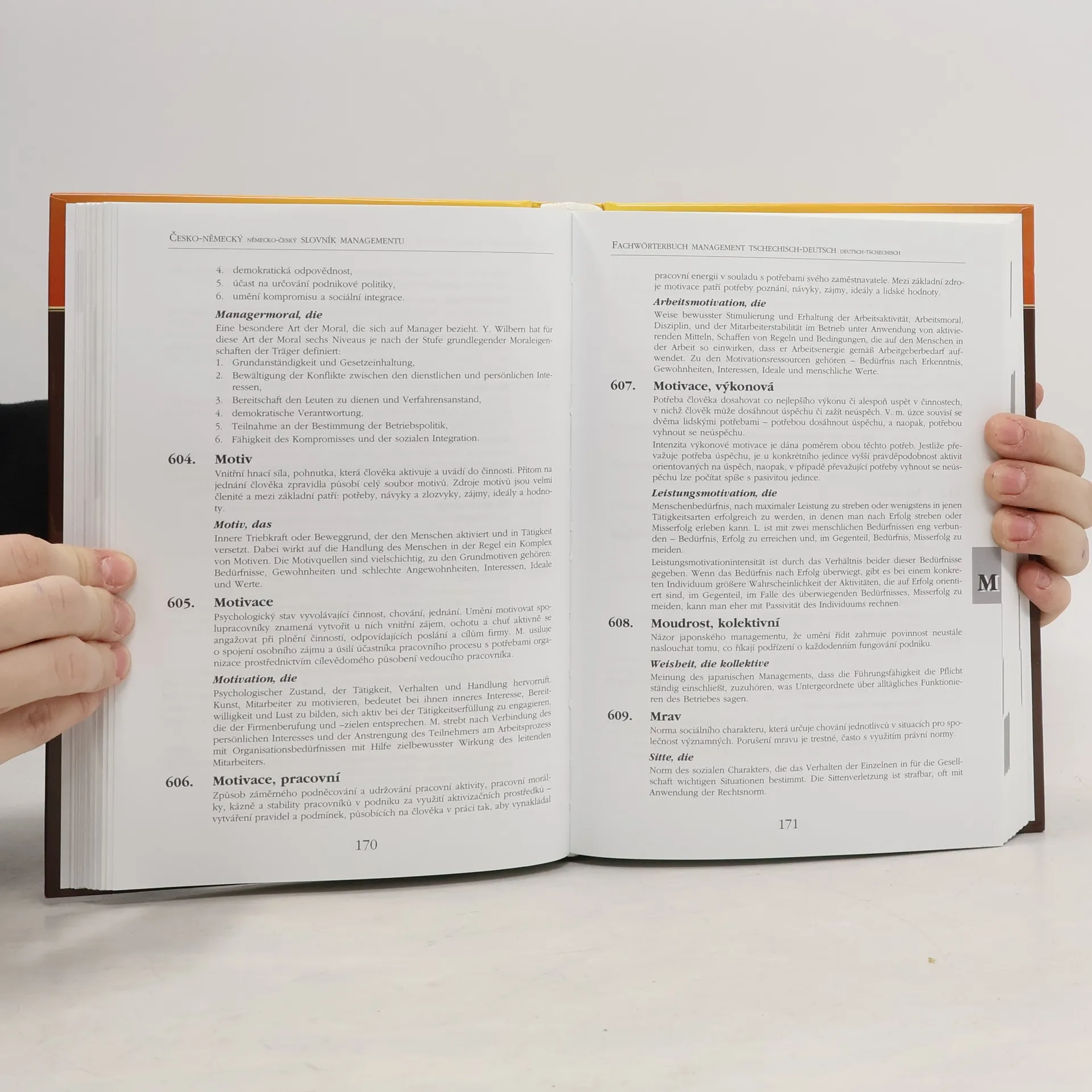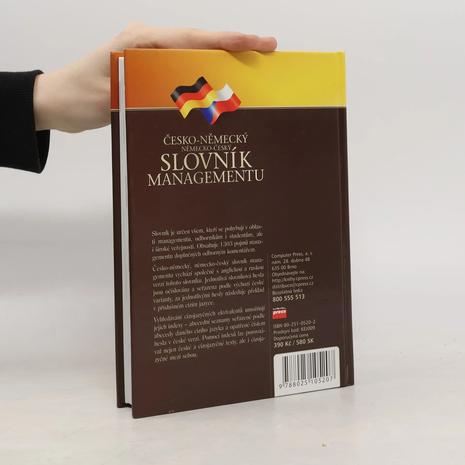 Výkladový slovník pojmů z oblasti managementu a souvisejích oborů. Slovník obsahuje více než 1300 hesel řazených podle české abecedy a opatřených pořadovým číslem. Pojmy jsou invertovány. Slovník uvádí zejména výrazy používané v managementu, ale i některé obecnější ekonomické termíny. Je zakončen indexem německých ekvivalentů s odkazy na číslo pojmu a stránku. Paralelně vychází i ruská verze tohoto slovníku. Čísla hesel jsou v obou slovnících totožná.