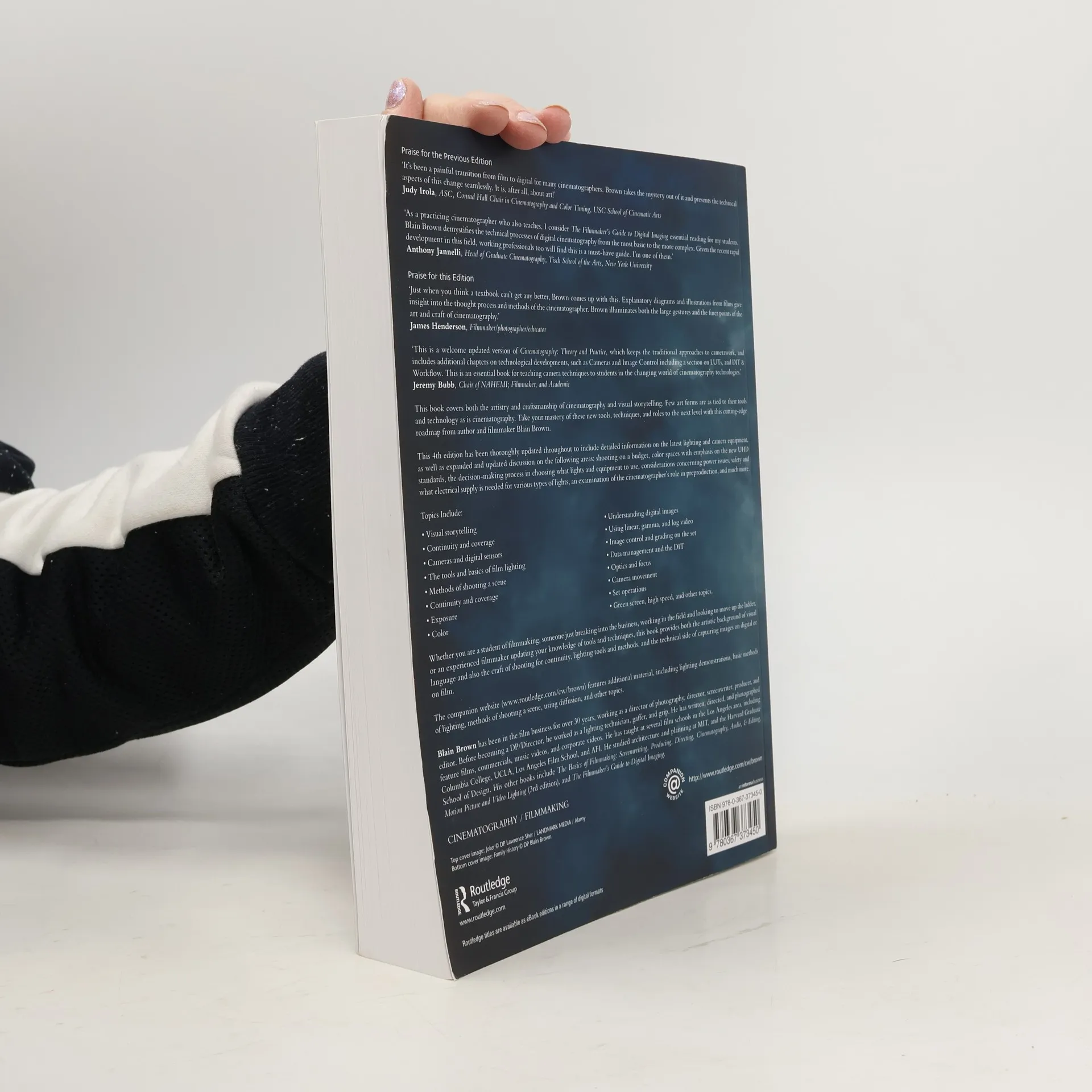 This book covers both the artistry and craftsmanship of cinematography and visual storytelling. Few art forms are as tied to their tools and technology as is cinematography. Take your mastery of these new tools, techniques, and roles to the next level with this cutting-edge roadmap from author and filmmaker Blain Brown. This 4th edition has been thoroughly updated throughout to include detailed information on the latest lighting and camera equipment, as well as expanded and updated discussion on the following shooting on a budget, color spaces with emphasis on the new UHD standards, the decision-making process in choosing what lights and equipment to use, considerations concerning power issues, safety and what electrical supply is needed for various types of lights, an examination of the cinematographer’s role in preproduction, and much more. Topics • Visual storytelling • Continuity and coverage • Cameras and digital sensors • The tools and basics of film lighting • Methods of shooting a scene • Continuity and coverage • Exposure • Color • Understanding digital images • Using linear, gamma, and log video • Image control and grading on the set • Data management and the DIT • Optics and focus • Camera movement • Set operations • Green screen, high speed, and other topics.Whether you are a student of filmmaking, someone just breaking into the business, working in the field and looking to move up the ladder, or an experienced filmmaker updating your knowledge of tools and techniques, this book provides both the artistic background of visual language and also the craft of shooting for continuity, lighting tools and methods, and the technical side of capturing images on digital or on film. The companion website (www.routledge.com/cw/brown) features additional material, including lighting demonstrations, basic methods of lighting, methods of shooting a scene, using diffusion, and other topics.