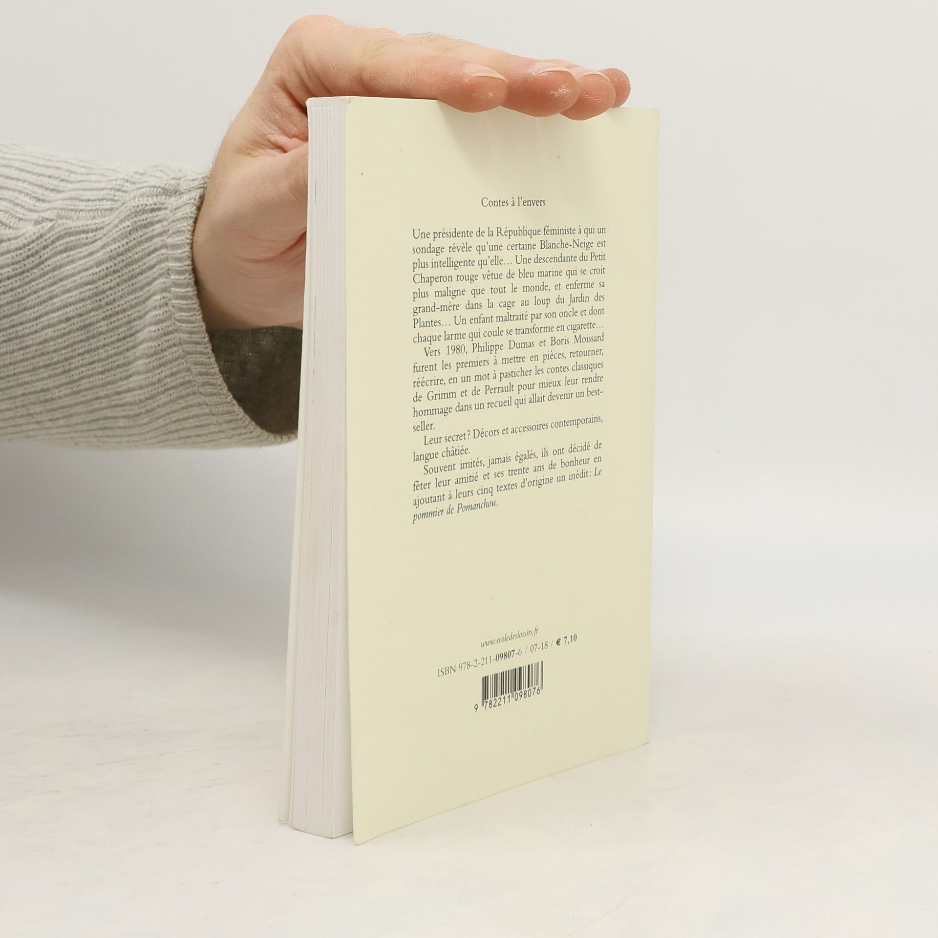 Une présidente de la République féministe à qui un sondage révèle qu'une certaine Blanche-Neige est plus intelligente qu'elle... Une descendante du Petit Chaperon rouge vêtue de bleu marine qui se croit plus maligne que tout le monde, et enferme sa grand-mère dans la cage au loup du Jardin des Plantes... Un enfant maltraité par son oncle et dont chaque larme qui coule se transforme en cigarette... Vers 1980, Philippe Dumas et Boris Moissard furent les premiers à mettre en pièces, retourner, réécrire, en un mot à pasticher les contes classiques de Grimm et de Perrault pour mieux leur rendre hommage dans un recueil qui allait devenir un best-seller. Leur secret ? Décors et accessoires contemporains, langue châtiée. Souvent imités, jamais égalés, ils ont décidé de fêter leur amitié et ses trente ans de bonheur en ajoutant à leurs cinq textes d'origine un inédit : Le pommier de Pomanchou. Ils sont amis d'enfance. Boris Moissard était libraire quand Philippe Dumas est venu lui demander de rédiger des textes pour un projet d'album qui comptait alors quelques croquis, dont un Petit Chaperon vêtu de bleu. Aussitôt dit, aussitôt fait. Pour regarder d'un oeil étranger, sinon objectif, la pile de volumes diminuer sur son comptoir, le libraire prit un pseudonyme, qui est à lui seul, sous forme de contrepèterie, un hommage à la littérature (Maurice Boissard était un pseudonyme de Léautaud). Le couple légendaire Dumas-Moissard était né.