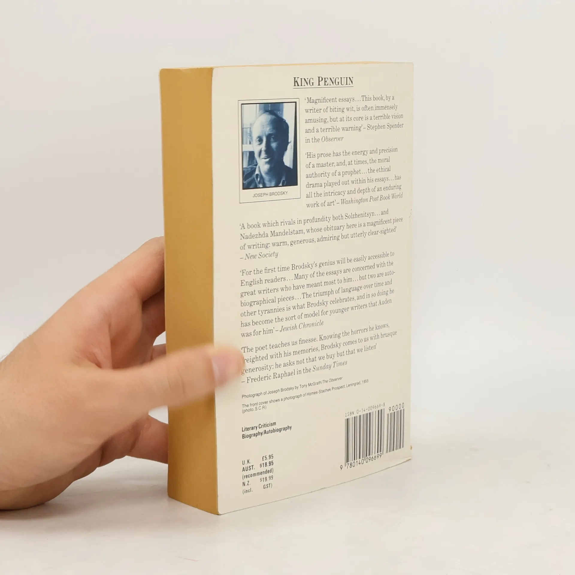 Essayist and poet Joseph Brodsky was one of the most penetrating voices of the twentieth century. This prize-winning collection of his diverse essays includes uniquely powerful appreciations of great writers: on Dostoevsky and the development of Russian prose, on Auden and Akhmatova, Cavafy, Montale and Mandelstam. These are contrasted with his reflections on larger themes of tyranny and evil, and subtle evocations of his childhood in Leningrad. Brodsky's insightful appreciation of the intricacies of language, culture and identity connect these works, revealing his remarkable gifts as a prose writer.