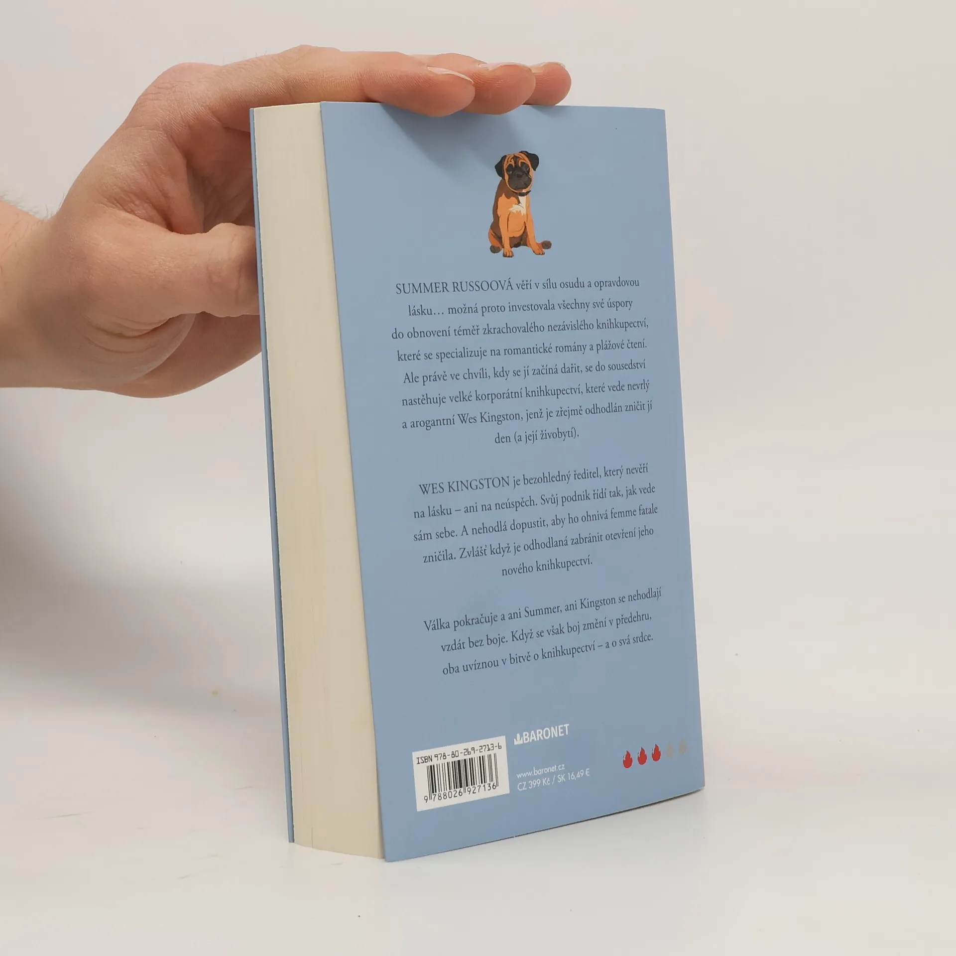 Dvě knihkupectví. Dva světy. Jedna nečekaná láska. Summer Russoová věří v sílu osudu a opravdovou lásku... možná proto investovala všechny své úspory do obnovení téměř zkrachovalého nezávislého knihkupectví, které se specializuje na romantické romány a plážové čtení. Ale právě ve chvíli, kdy se jí začíná dařit, se do sousedství nastěhuje velké korporátní knihkupectví, které vede nevrlý a arogantní Wes Kingston, jenž je zřejmě odhodlán zničit jí den (a její živobytí). Wes Kingston je bezohledný ředitel, který nevěří na lásku – ani na neúspěch. Svůj podnik řídí tak, jak vede sám sebe. A nehodlá dopustit, aby ho ohnivá femme fatale zničila. Zvlášť když je odhodlaná zabránit otevření jeho nového knihkupectví. Aspoň že se Summer může těšit na každoroční rodinnou dovolenou v Mysticu v Kalifornii, která má pro ni být odpočinkem od této patové situace. Když však dorazí do chaty na pláži, uvědomí si, že její obvyklý letní odpočinek možná přece jen nebude tak bezstarostný. Její sestra s sebou přivezla nejen svého přítele, ale i jeho bratra, který je shodou okolností ten stejný, nevrlý, ale neskutečně sexy knihkupecký magnát, od kterého si Summer myslela, že se jí podaří utéct. Válka knihkupectví stále pokračuje a ani Summer, ani Kingston se nehodlají vzdát bez boje. Když však jedna věc vede k druhé a boj se změní v předehru, oba uvíznou v bitvě o knihkupectví – a o svá srdce.