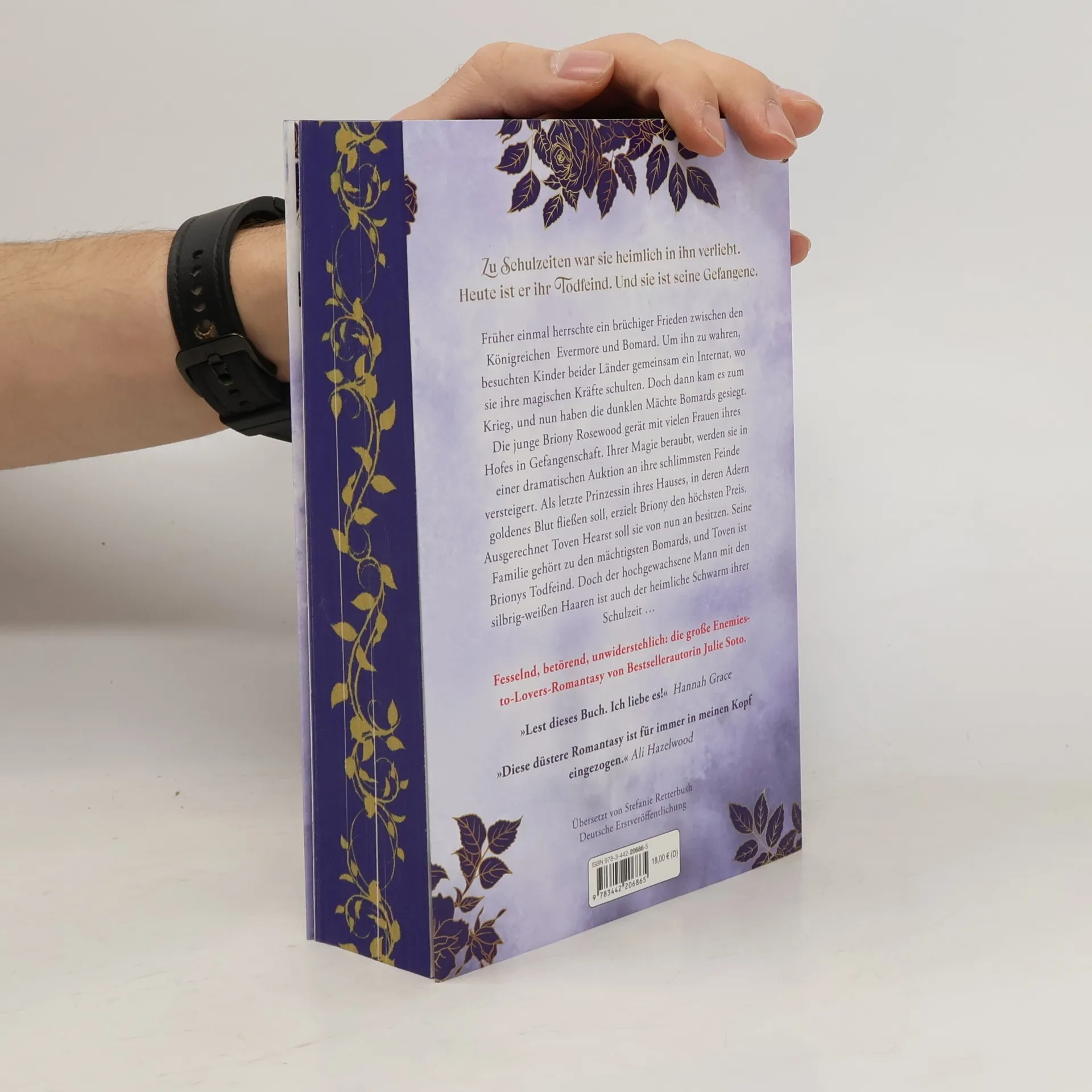 Er ist ihr größter Feind. Und das dunkelste Geheimnis ihres Herzens ... Früher einmal herrschte ein brüchiger Frieden zwischen den Reichen Evermore und Bomard. Um ihn zu wahren, besuchten Kinder beider Seiten gemeinsam ein Internat, wo sie ihre magischen Kräfte schulten. Doch dann kam es zum Krieg, und nun haben die dunklen Mächte Bomards gesiegt. Die junge Briony Rosewood gerät mit vielen Frauen ihres Hofes in Gefangenschaft. Ihrer Magie beraubt, werden sie in einer dramatischen Auktion versteigert. Als letzte Prinzessin ihres Hauses, in deren Adern goldenes Blut fließen soll, erzielt Briony den höchsten Preis. Ausgerechnet Toven Hearst soll sie von nun an besitzen. Seine Familie gehört zu den mächtigsten Bomards, und Toven ist Brionys Todfeind. Doch der hochgewachsene Mann mit den silbrig-weißen Haaren ist auch der heimliche Schwarm ihrer Schulzeit … Für alle, die diese Tropes lieben: Enemies to Lovers Forbidden Love Royal Romance Villain gets the Girl From two different World