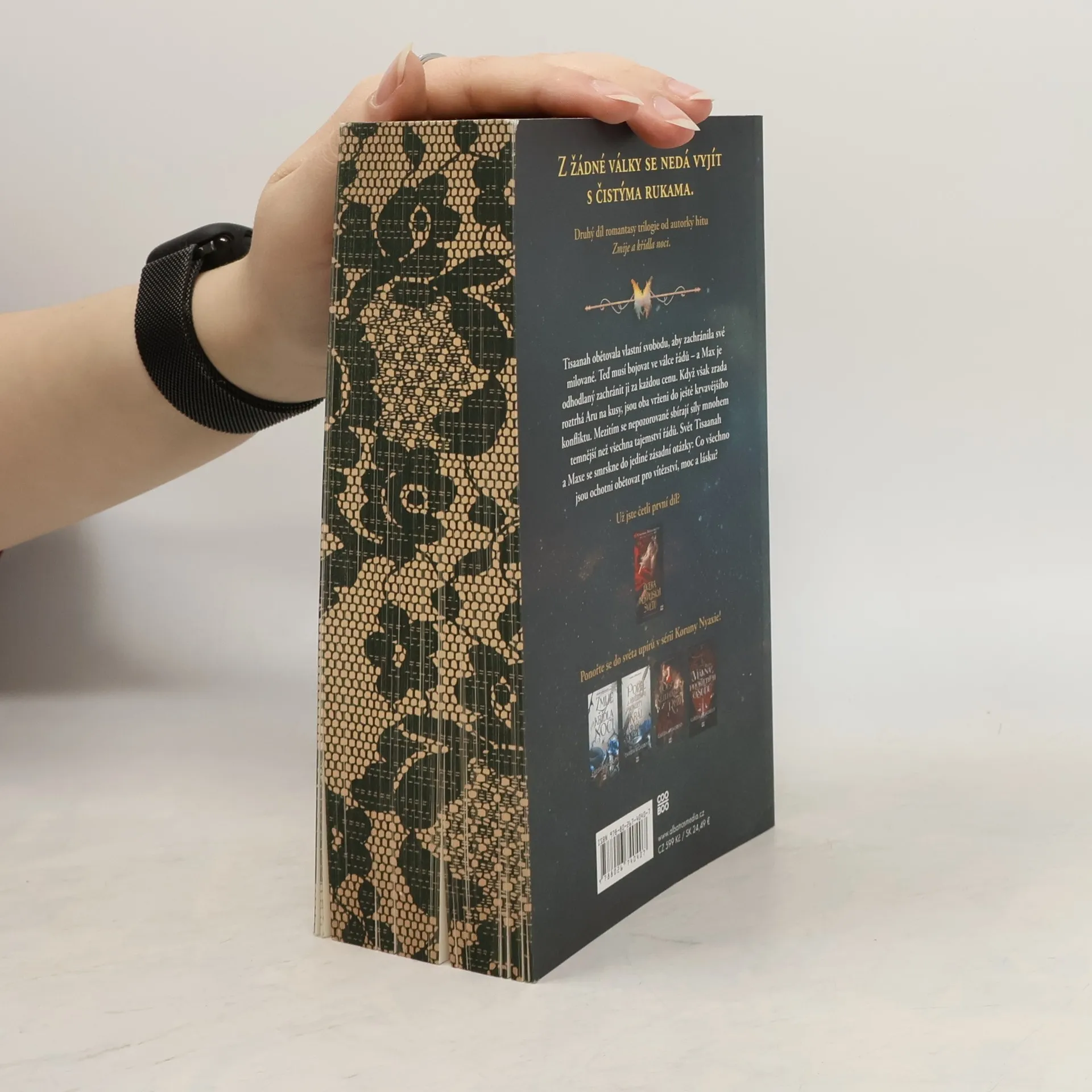 Z žádné války se nedá vyjít s čistýma rukama. Druhý díl romantasy trilogie od autorky hitu Zmije a křídla noci. Tisaanah obětovala vlastní svobodu, aby zachránila své milované. Teď musí bojovat ve válce Řádů – a Max je odhodlaný zachránit ji za každou cenu. Když však zrada roztrhá Aru na kusy, jsou oba vrženi do ještě krvavějšího konfliktu. Mezitím se nepozorovaně sbírají síly mnohem temnější než všechna tajemství Řádů. Ve chvíli, kdy se Tisaanah a Max zaplétají do sítě prastaré magie a pokřivených tajemství, jejich svět se smrskne do jediné zásadní otázky: Co všechno jsou ochotni obětovat pro vítězství, moc a lásku?