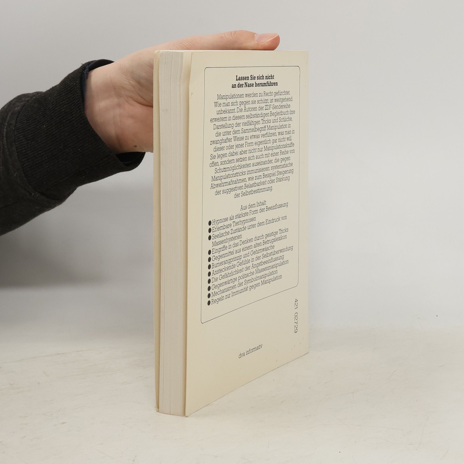 Lassen Sie sich nicht an der Nase herumführenManipulationen werden zu Recht gefürchtet. Wie man sich gegen sie schützt, ist weitgehend unbekannt. Die Autoren der ZDF-Sendereihe erweitern in diesem selbständigen Begleitbuch ihre Darstellung der vielfältigen Tricks und Schliche, die unter dem Sammelbegriff Manipulation in zwanghafter Weise zu etwas verführen, was man in dieser oder jener Form eigentlich gar nicht will. Sie legen dabei aber nicht nur Manipulationskniffe offen, sondern setzen sich auch mit einer Reihe von Schutzmöglichkeiten auseinander, die gegen Manipulationstricks immunisieren: systematische Abwehrmaßnahmen, wie zum Beispiel Steigerung der suggestiven Belastbarkeit oder Stärkung der Selbstbestimmung.Aus dem Inhalt:* Hypnose als stärkste Form der Beeinflussung* Erlernbare Tierhypnosen* Seelische Zustände unter dem Eindruck von Massenhysterien* Eingriffe in das Denken durch geistige Tricks* Gegenmittel aus einem alten Betrugslexikon* Bumerangprinzip und Gehirnwäsche* Ansteckende Gefühle in der Selbstüberwindung* Die Gefährlichkeit der Angstbeeinflussung* Gegenwärtige politische Massenmanipulation* Mechanismen der Symbolmanipulation* Regeln zur Immunität gegen Manipulation