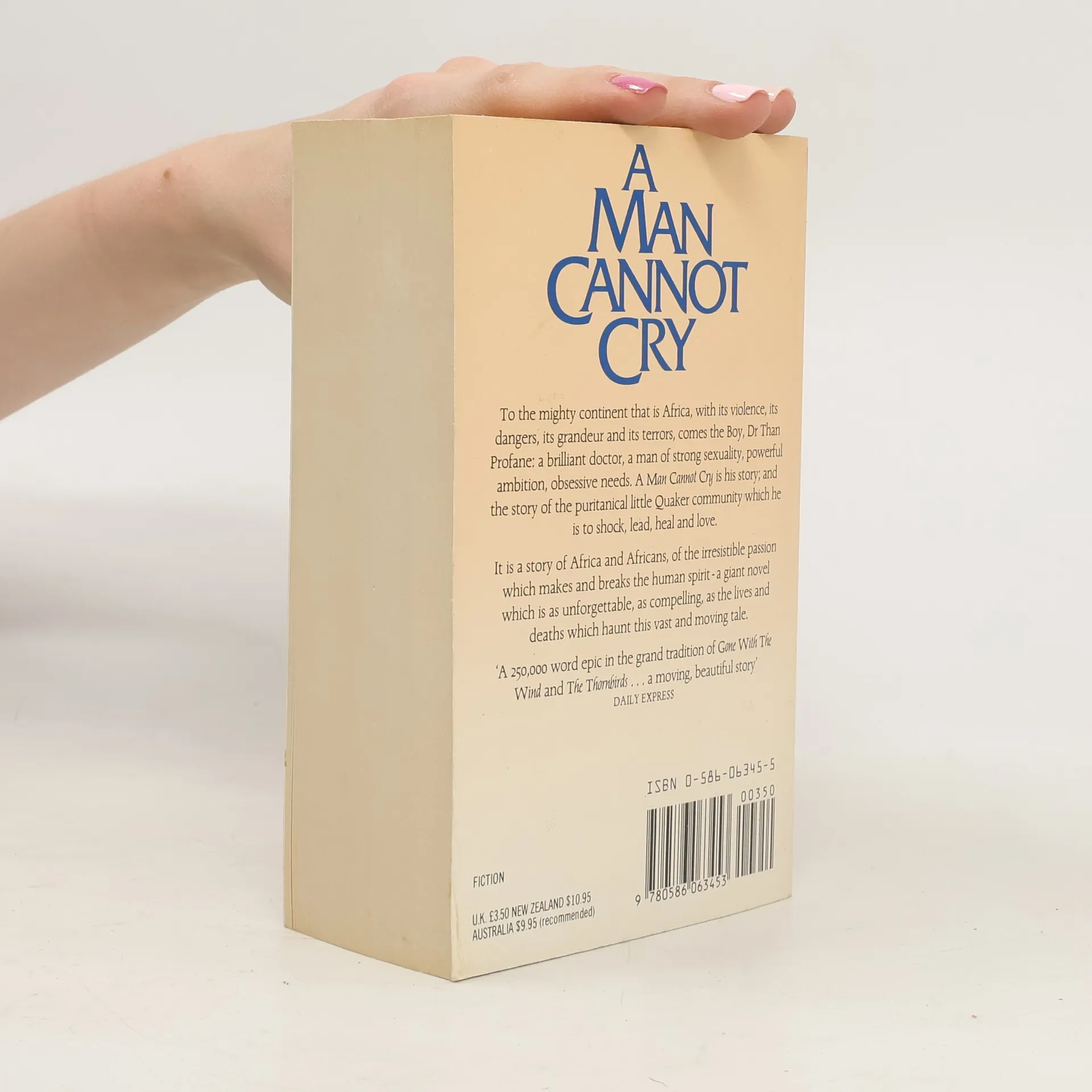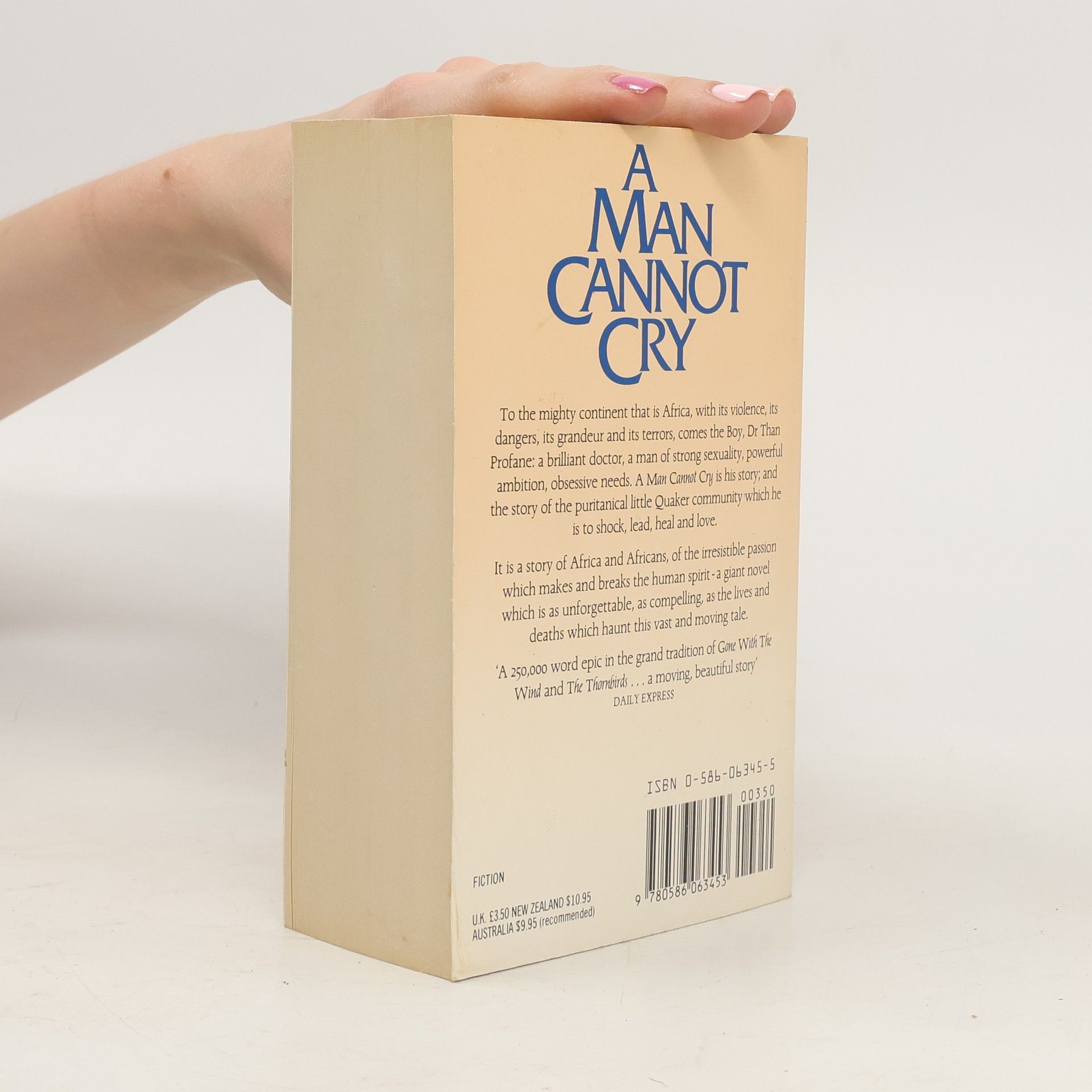 To the mighty continent that is Africa, with its violence, its dangers, its grandeur and its terrors, comes the Boy, Dr Than Profane: a brilliant doctor, a man of strong sexuality, powerful ambition, obsessive needs. A Man Cannot Cry is his story; and the story of the puritanical little Quaker community which he is to shock, lead, heal, and love. It is a story of Africa and Africans, of the irresistible passion which make and breaks the human spirit - a giant novel which is as unforgettable, as compelling, as the lives and deaths which haunt this vast and moving tale.