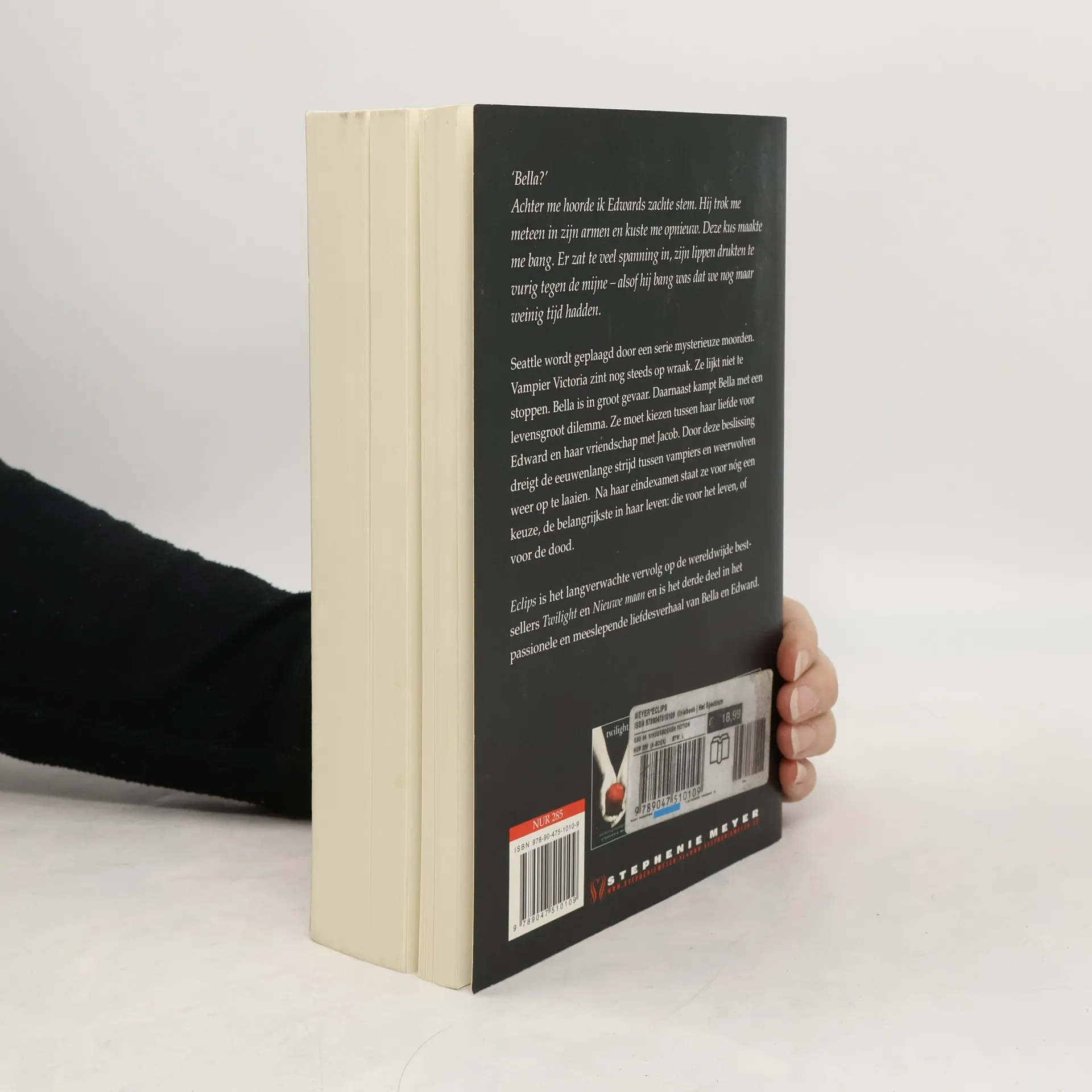 'Bella?' Achter me hoorde ik Edwards zachte stem. Hij trok me meteen in zijn armen en kuste me opnieuw. Deze kus maakte me bang. Er zat te veel spanning in, zijn lippen drukten te vurig tegen de mijne – alsof hij bang was dat we nog maar weinig tijd hadden. Seattle wordt geplaagd door een serie mysterieuze moorden. Vampier Victoria zint nog steeds op wraak. Ze lijkt niet te stoppen. Bella is in groot gevaar. Daarnaast kampt Bella met een levensgroot dilemma. Ze moet kiezen tussen haar liefde voor Edward en haar vriendschap met Jacob. Door deze beslissing dreigt de eeuwenlange strijd tussen vampiers en weerwolven weer op te laaien. Na haar eindexamen staat ze voor nóg een keuze, de belangrijkste in haar leven: die voor het leven, of voor de dood.