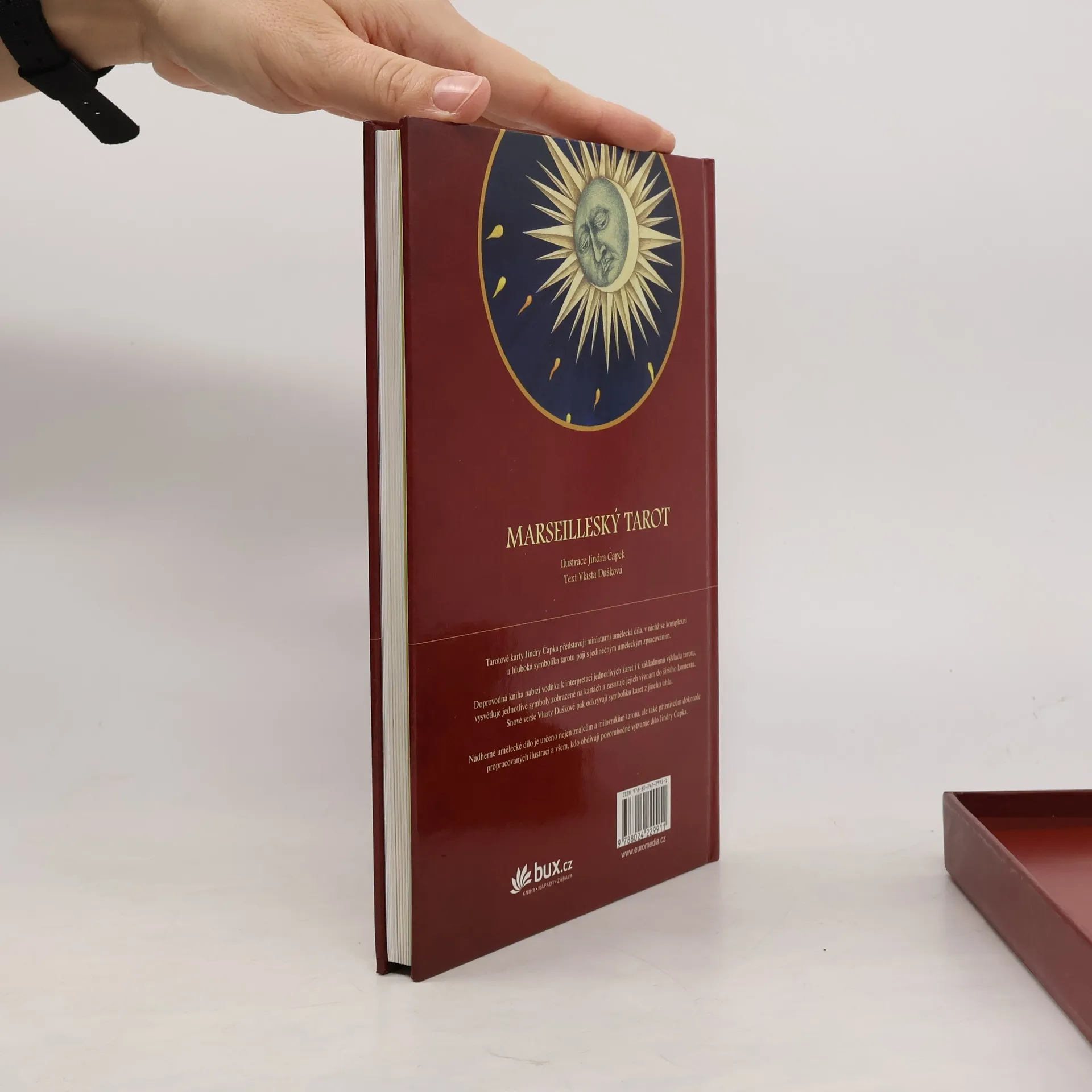 Tarotové karty Jindry Čapka představují miniaturní umělecká díla, v nichž se složitá a hluboká symbolika tarotu pojí s jedinečným uměleckým zpracováním. Doprovodná kniha nabízí vodítka k interpretaci jednotlivých karet i k základnímu výkladu tarotu, vysvětluje jednotlivé symboly, zobrazené na kartách, a zasazuje jejich význam do širšího kontextu. Nádherné umělecké dílo je určeno nejen znalcům a milovníkům tarotu, ale také příznivcům dokonale propracovaných ilustrací a všem, kteří obdivují pozoruhodné výtvarné dílo Jindry Čapka.