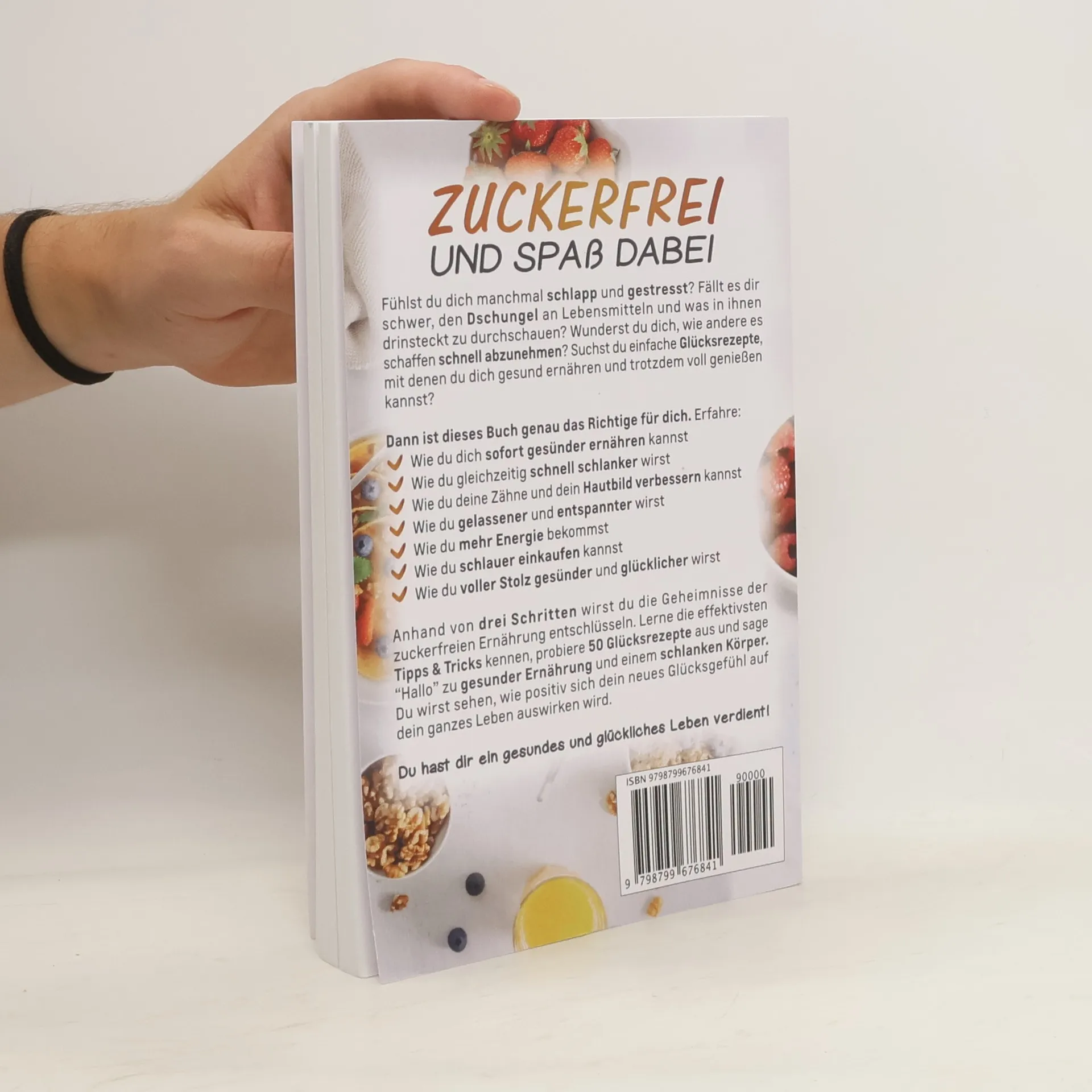 Ernähre dich sofort gesünder – und nimm dabei noch ab!Fühlst du dich manchmal schlapp und gestresst? Fällt es dir schwer, den Dschungel an Lebensmitteln und was in ihnen drinsteckt zu durchschauen? Wunderst du dich, wie andere es schaffen, schnell abzunehmen? Suchst du einfache Glücksrezepte mit denen du dich gesund ernähren und trotzdem voll genießen kannst? Möchtest du das wahre Geheimnis für eine starke Gesundheit und einen attraktiven Körper erfahren?Dann ist dieses Buch genau das Richtige für dich. ✔️ Wie du dich sofort gesünder ernähren kannst✔️ Wie du gleichzeitig schnell schlanker wirst✔️ Wie du deine Zähne und dein Hautbild verbessern kannst✔️ Wie du gelassener und entspannter wirst✔️ Wie du mehr Energie bekommst✔️ Wie du schlauer einkaufen kannst✔️ Wie du voller Stolz gesünder und glücklicher wirstAnhand von drei einfachen Schritten wirst du dich bald wieder gern im Spiegel ? 1. Schritt – Verstehe, was Zucker mit uns Entdecke anhand von Fakten wo genau die Herausforderung liegt? 2. Schritt – Verändere deinen Kö Lerne die effektivsten Tricks für eine gesunde Ernährung, erfahre wie dich die Nahrungsmittelindustrie an der Nase herumführt und lerne die besten Zuckeralternativen kennen? 3. Schritt – Verfestige deine Erfahre wie du nachhaltig motiviert bleibst und wie zuckerfreie Ernährung in der Familie und mit Kindern funktionieren kannHast du schon mal einen Jogurt mit der Aufschrift »nur 0,1% Fett« gekauft? Oder einen Frischkäse mit »besonders viel Protein« ? In diesem Buch erfährst du, warum viele Produkte Mogelpackungen sind.Wir haben oft wenig Zeit und kaufen deshalb im Supermarkt eher nach Gefühl statt nach Wissen ein. Das wir sind müde, launisch, träge und haben immerzu Appetit . Schluss damit! Erfahre einfache Tricks , die deine Augen öffnen werden.Entdecke die Wahrheit darüber, warum Zucker uns Energie raubt, unsere Haut schneller altern lässt, uns daran hindert abzunehmen und uns sogar krank macht. Du musst dein Leben nicht auf den Kopf stellen oder kräftezehrende Diäten durchziehen. Mit diesem Buch erhältst du genau das Wissen, was du brauchst , um einfach und schnell Erfolge zu erzielen. Dabei ist es egal, ob du dich normal, vegetarisch, vegan, low carb oder ketogen ernährst. Gesünder leben und abnehmen am Bauch oder anderswo geht einfacher als du denkst.? Zudem erhältst du einen leckeren BONUS !Du benötigst Inspiration für gesunde Gerichte? Erhalte deshalb zusätzlich die beste Auswahl an Glücksrezepten :✔️ 50 schnelle und einfache Rezepte zum Kochen, Backen und Naschen inkl. leckerem Vital-Frühstück, köstlichen zuckerfreien Süßigkeiten (Gummibärchen, Muffins, Eis, Kekse u.a.), angesagten Bowls sowie gesunden Energie-Smoothies.Wir leben nur ein einziges Mal auf diesem wundervollen Planeten. Es wäre doch schade, diese Zeit unnötig zu verkürzen, denkst du nicht auch? Beginne deshalb lieber heute als morgen damit die attraktivste Version deiner selbst zu werden. Du wirst sehen, wie positiv sich dein neues Glücksgefühl auf dein ganzes Leben auswirken wird. Starte am besten jetzt mit dem Kauf dieses Buches und dem ersten Schritt. Du hast absolut nichts zu verlieren, aber ein glückliches Leben zu gewinnen!
