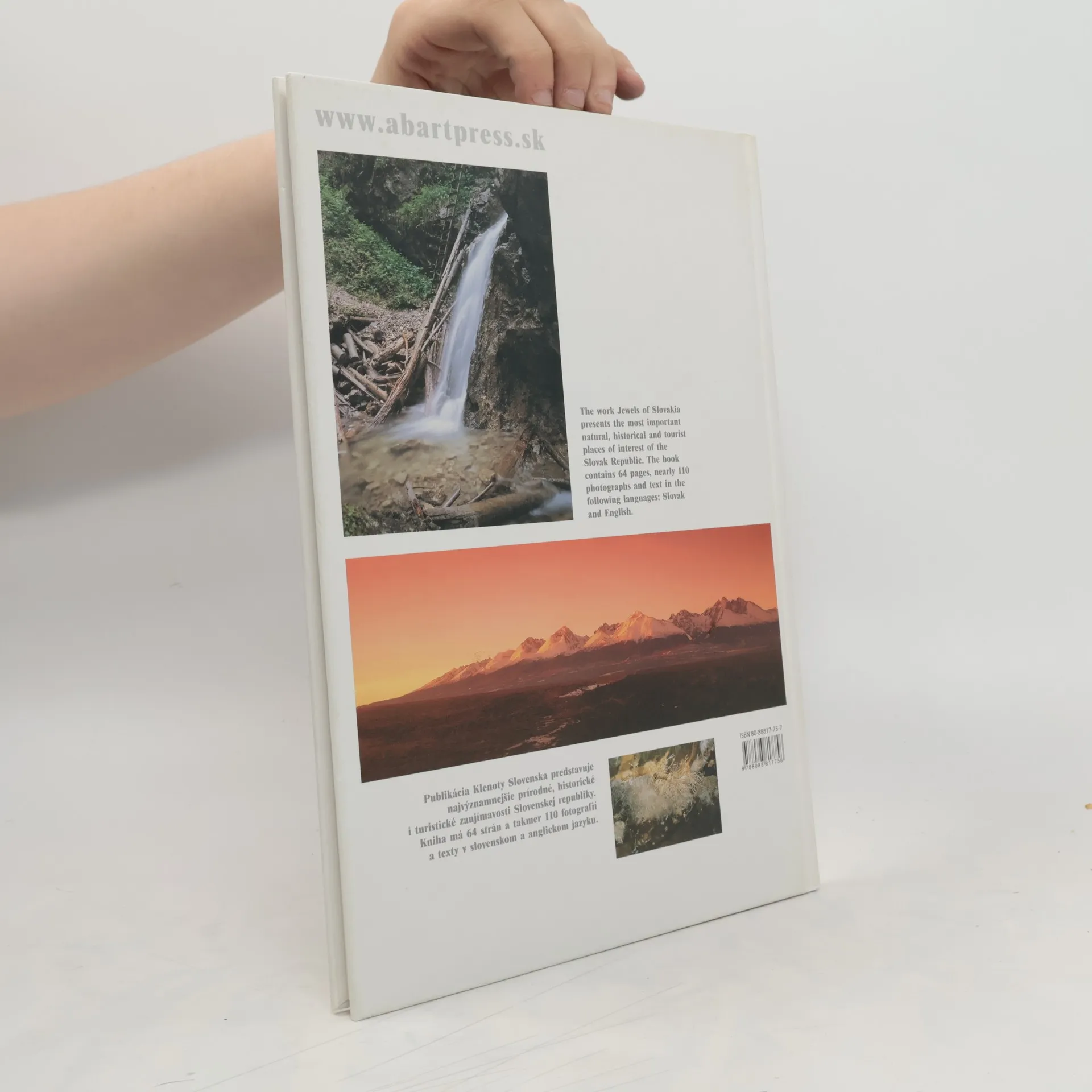 Slovensko - na jeho ploche necelých päťdesiattisíc štvorcových kilometrov sa nachádza nepreberné množstvo archeologických lokalit, zrúcanin stredovekých hradov, historických mest, ale aj pestrá príroda s chránenou flórou i faunou. A práve publikácia Klenoty Slovenska predstavuje najvýznamnejšie prírodné, historické i turistické zaujímavosti Slovenskej republiky. Kniha má 64 strán a takmer 110 fotografií, ktoré sú doplnené texty v slovenskom a anglickom jazyku.