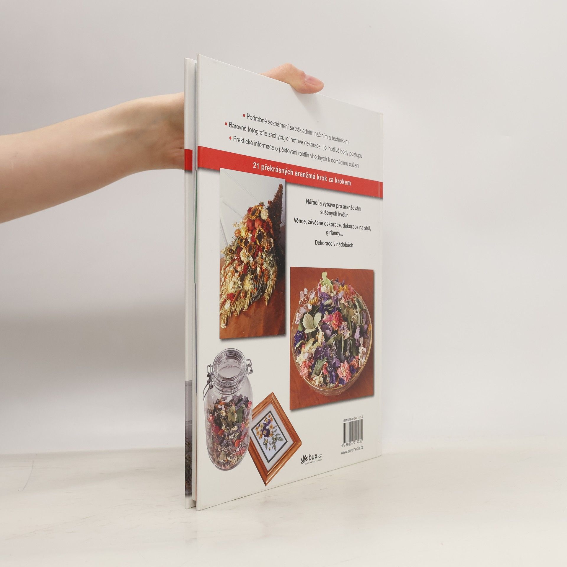 Usušíme-li správně květiny, můžeme je uchovat a využít při výrobě trvanlivých květinových aranžmá stejně půvabných, jako jsou dekorace z čerstvého materiálu. Ze sušených květin lze vytvářet věnce, nástěnné závěsy, dekorace na stůl, girlandy, suché vazby do váz a spoustu dalších dekorací. Tvar, barevnost a celkové ladění záleží jen a jen na kreativitě a fantazii autora. Nechte se inspirovat jednadvaceti překrásnými aranžmá popsanými krok za krokem.