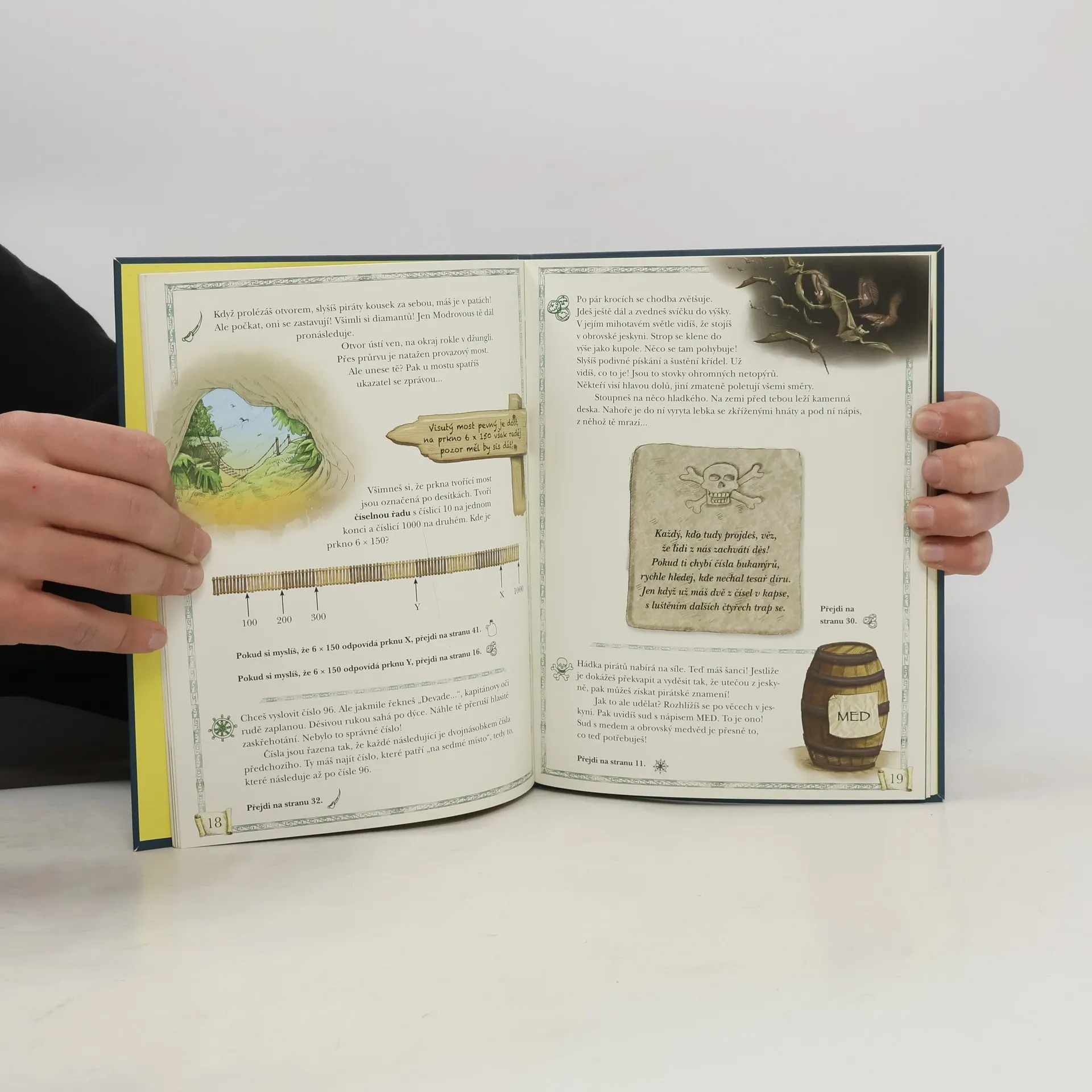 Knížka Tajemná jeskyně, kterou napsal David Glover, přenese malého čtenáře do jeskyně, kam se vydá po stopách pirátského pokladu. Napínavý příběh ho rychle vtáhne do děje. Podaří se mu pomocí matematických znalostí a bystré mysli přelstít pirátské bratry a získat jejich čtyři tajná znamení – klíč k pokladu? Jestli někdy zaváhá, nevadí, je tu ještě papoušek Amígo, která mu rád podá pomocné křídlo. Knížky z edice Dobrodružná matematika jsou specifické svou formou – nečtou se chronologicky po stránkách za sebou, ale čtenář listuje a posupuje podle toho, jak řeší jednotlivé úkoly. Se správnou odpovědí se posune dál v ději příběhu, vinou špatné odpovědi zabloudí, ale je nasměrován k opětovnému řešení úlohy. Rozvíjeno je: - využívání znalostí z oblasti matematiky - sčítání, odčítání, násobení a dělení - desetinná čísla, zlomky, procenta -- zdroj: www.knihcentrum.cz --