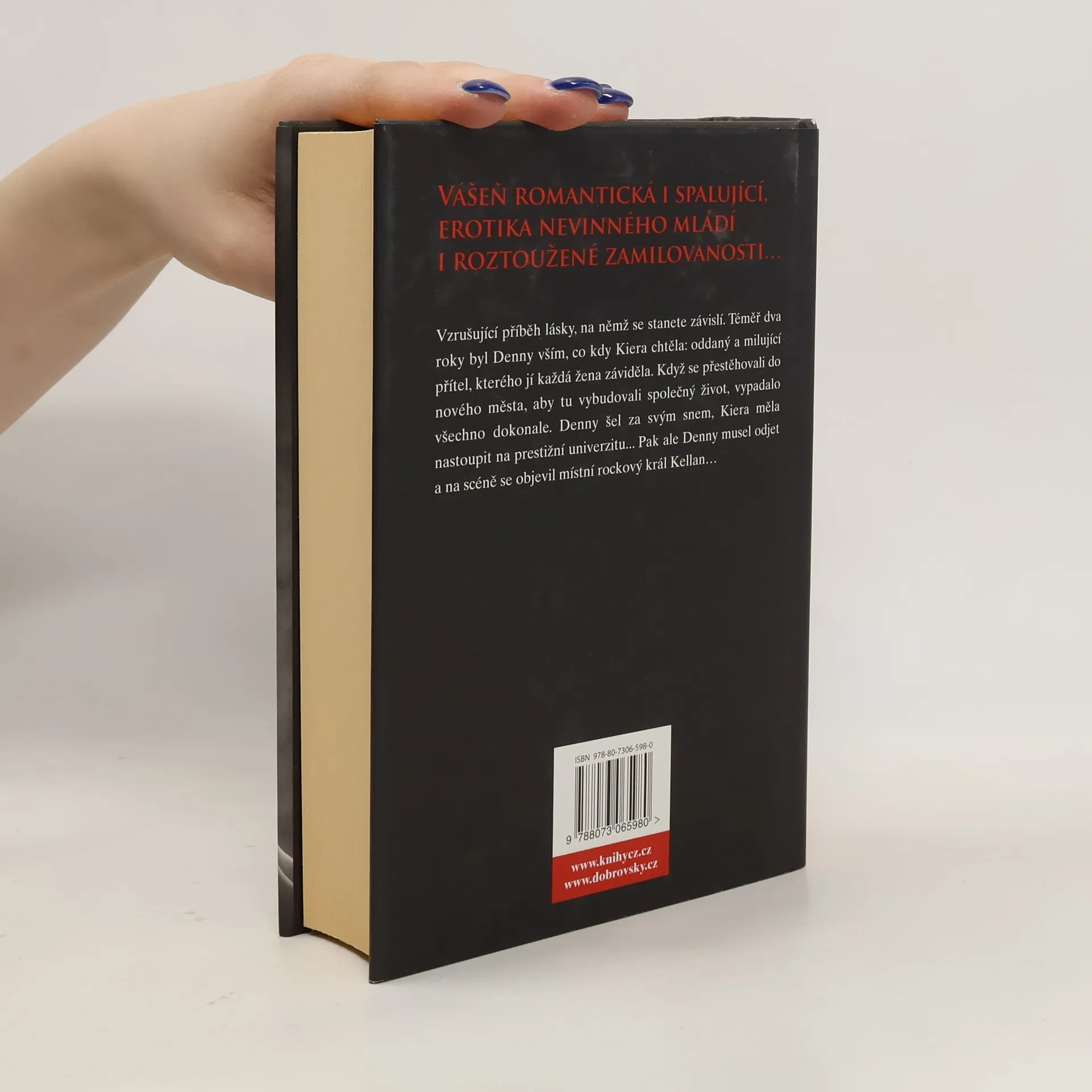 Vzrušující erotický příběh, na němž se stanete závislí. Téměř dva roky představoval Denny všechno, co kdy Kiera chtěla: Byl to oddaný milující přítel a každá žena jí ho záviděla. Když se přestěhovali do nového města, kde chtěli vybudovat společný život, vypadalo všechno dokonale. Denny šel za svým snem, Kiera měla nastoupit na prestižní univerzitu... Pak ale Denny musel odcestovat a mladý pár se rozdělil. Osamělá a smutná Kiera potřebovala utišit žal a zdrojem útěchy se jí stal místní rockový král Kellan. Nejprve byli jen kamarádi, ale jak se její samota prohlubovala, měli k sobě stale blíž. Jednoho večera se všechno zlomilo a ani jeden z nich už nebyl jako dřív.
