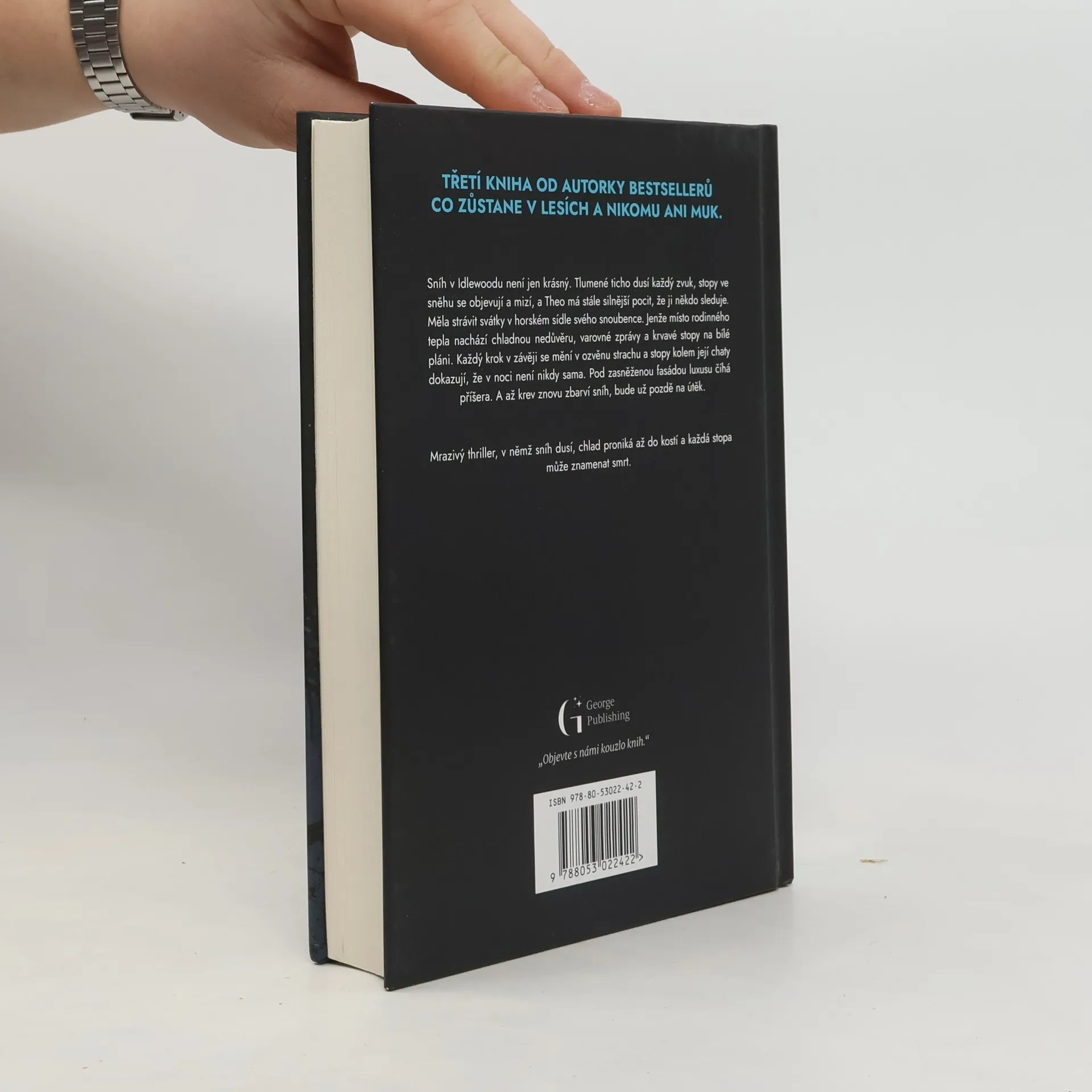 Sníh v Idlewoodu není jen krásný. Tlumené ticho dusí každý zvuk, stopy ve sněhu se objevují a mizí, a Theo má stále silnější pocit, že ji někdo sleduje. Měla strávit svátky v horském sídle svého snoubence. Jenže místo rodinného tepla nachází chladnou nedůvěru, varovné zprávy a krvavé stopy na bílé pláni. Každý krok v závěji se mění v ozvěnu strachu a stopy kolem její chaty dokazují, že v noci není nikdy sama. Pod zasněženou fasádou luxusu číhá příšera. A až krev znovu zbarví sníh, bude už pozdě na útěk. Mrazivý thriller, v němž sníh dusí, chlad proniká až do kostí a každá stopa může znamenat smrt.