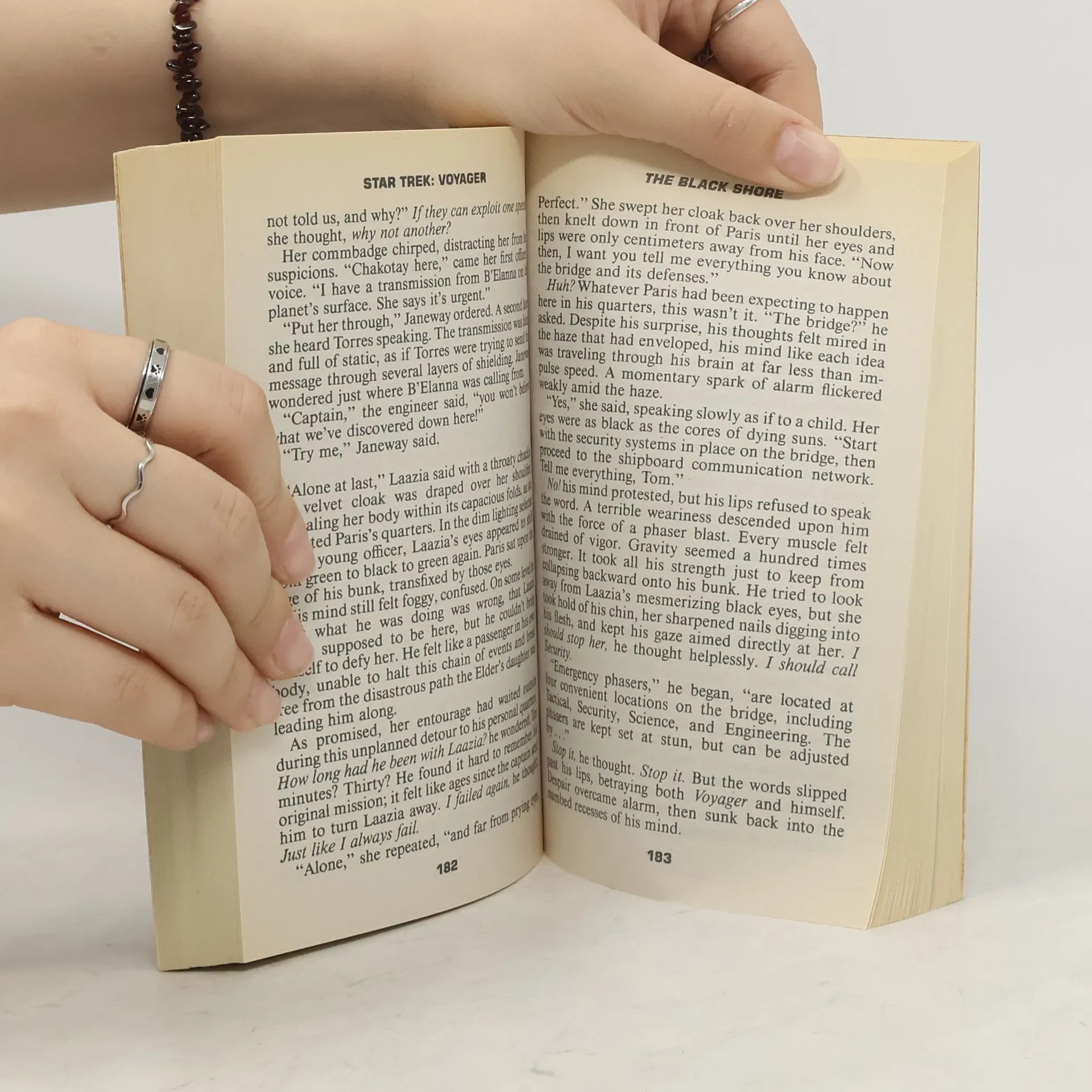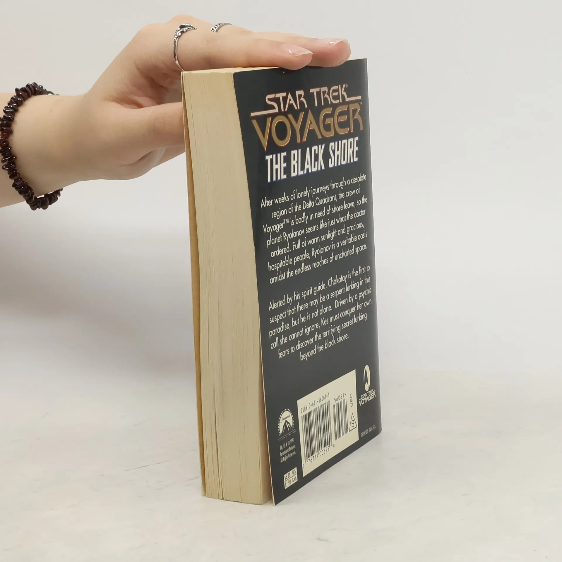 After weeks of lonely journeys through a desolate region fo the Delta Quadrant, the crew of "Voyager" is badly in need of shore leave, so the planet Ryolanov seems just what the doctor ordered. Full of warm sunlight and gracious, hospitable people, Ryolanov is a veritable oasis amidst the endless reaches of uncharted space. Alerted by his spirit guide, Chakotay is the first to suspect that there may be a serpent lurking in this paradise, but he is not alone. Driven by a psychic call she cannot ignore, Kes must conquer her own fears to discover the terrifying secret lurking beyond the black shore.