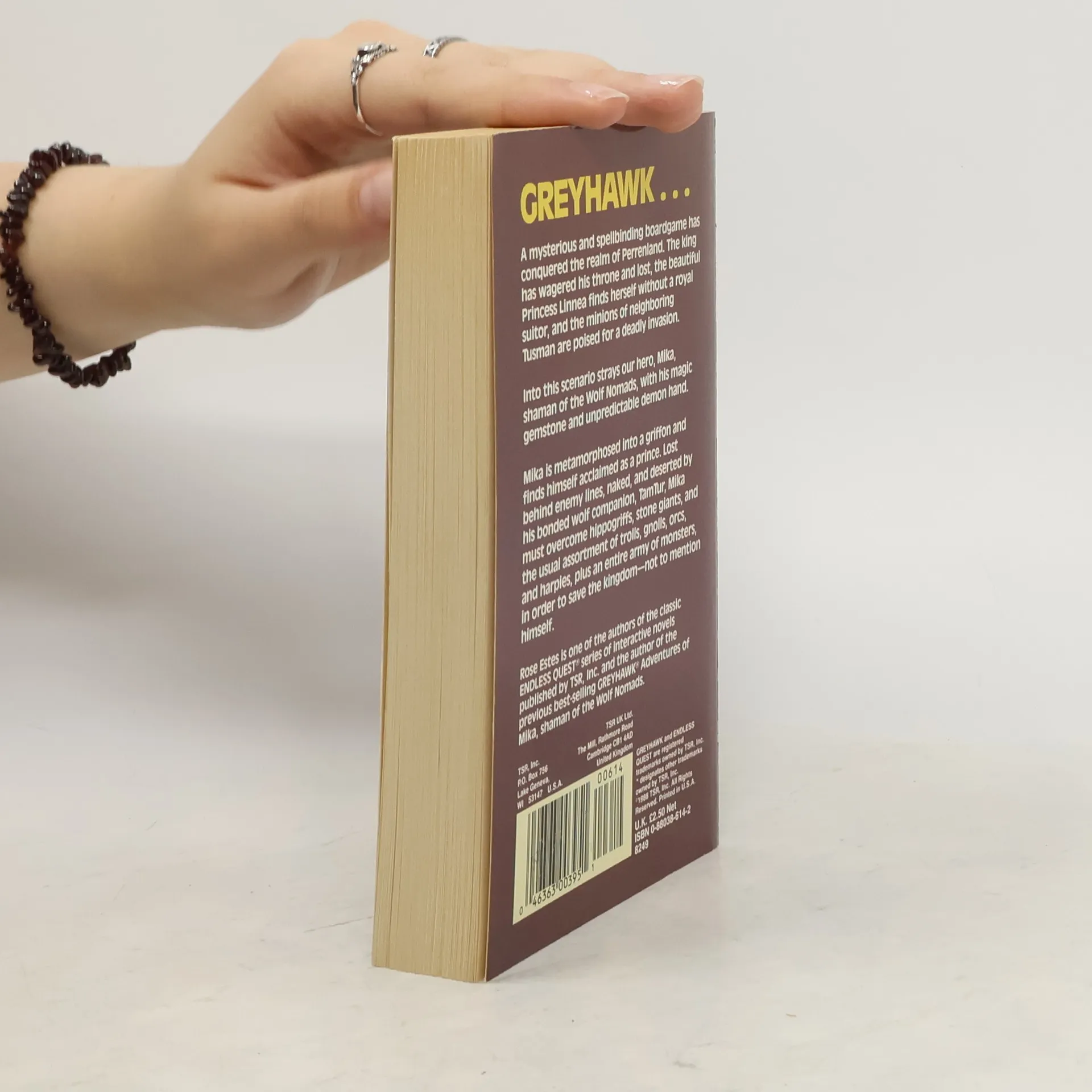 Greyhawk...A mysterious and spellbinding boardgame has conquered the realm of Perrenland. The king has wagered his throne and lost, the beautiful Princess Linnea finds herself without a royal suitor, and the minions of neighboring Tusman are poised for a deadly invasion.Into this scenario strays our hero, Mika, shaman of the Wolf Nomads, with his magic gemstone and unpredictable demon hand.Mika is metamorphosed into a griffon and finds himself acclaimed as a prince. Lost behind enemy lines, naked, and deserted by his bonded wolf companion, TamTur, Mika must overcome hippogriffs, stone giants, and the usual assortment of trolls, gnolls, orcs, and harpies, plus an entire army of monsters, in order to save the kingdom--not to mention himself.Rose Estes is one of the authors of the classic ENDLESS QUEST series of interactive novels published by TSR, Inc. and the author of the previous best-selling GREYHAWK Adventures of Mika, Shaman of the Wolf Nomads.