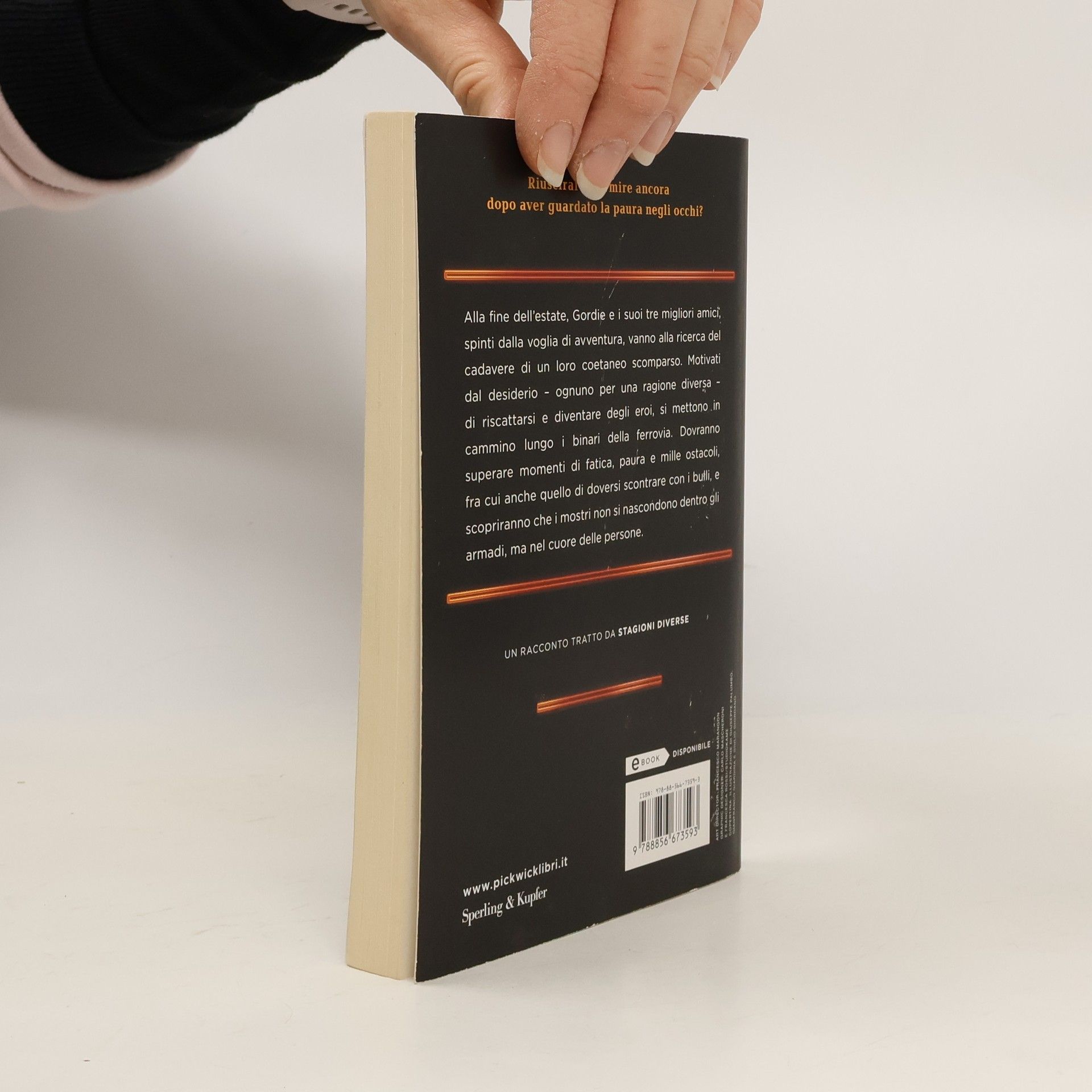 Alla fine dell'estate, Gordie e i suoi tre migliori amici, spinti dalla voglia di avventura, vanno alla ricerca del cadavere di un loro coetaneo scomparso. Motivati dal desiderio - ognuno per una ragione diversa - di riscattarsi e diventare degli eroi, si mettono in cammino lungo i binari della ferrovia. Dovranno superare momenti di fatica, paura e mille ostacoli, fra cui anche quello di doversi scontrare con i bulli, e scopriranno che i mostri non si nascondono dentro gli armadi, ma nel cuore delle persone. Questo racconto è già comparso in traduzione italiana con il titolo "Il corpo (Stand by me)" nella raccolta "Stagioni diverse".