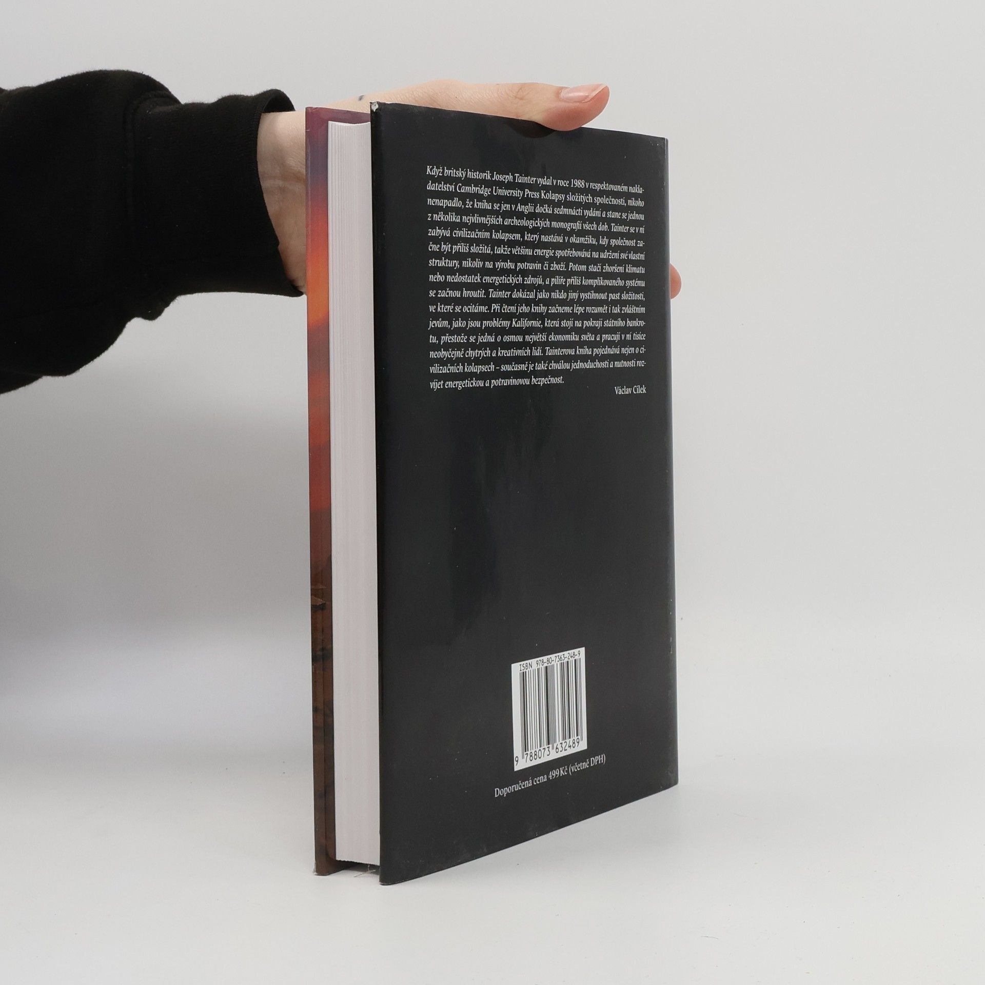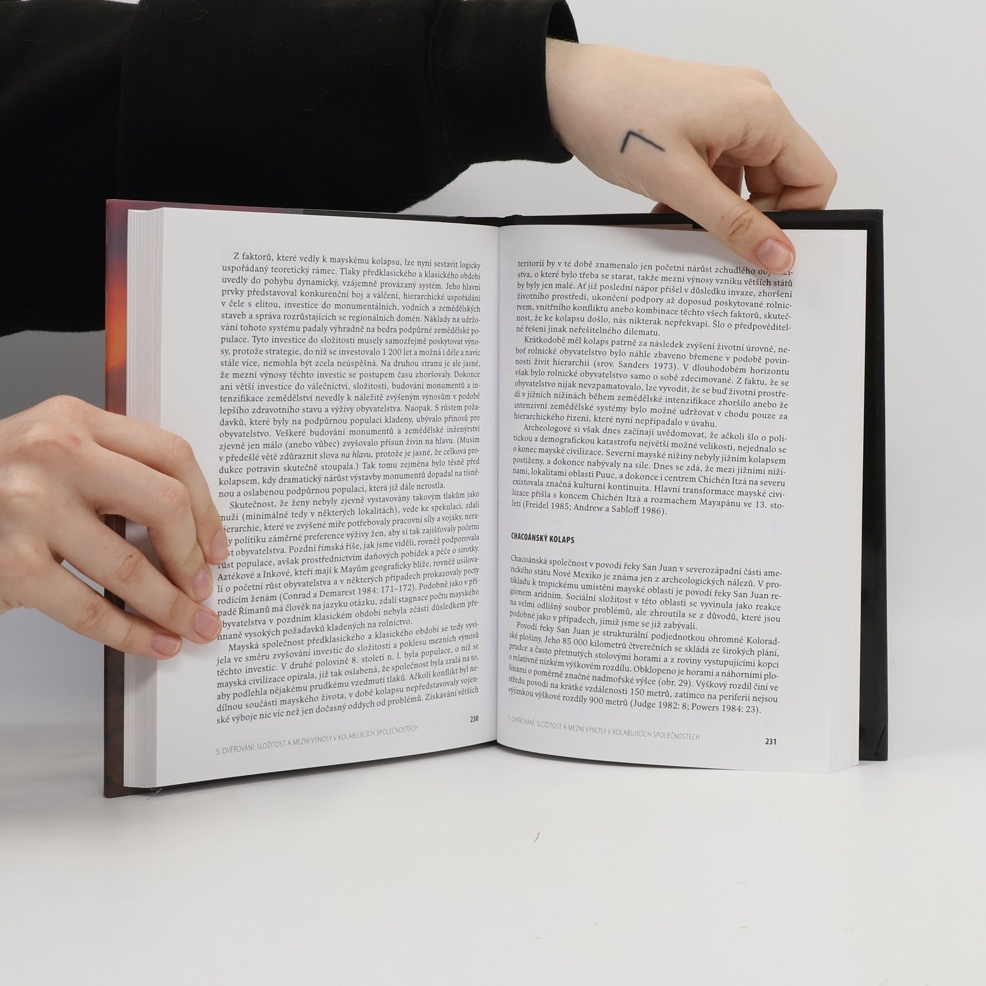 Americký archeolog, antropolog a historik Joseph A. Tainter se ve své nejznámější práci zabývá otázkou, proč se v minulosti zhroutily mnohé říše, státní útvary či jiné složité organizační formy lidské společnosti. Nejprve uvádí téměř dvě desítky případů kolapsu a podává přehled teorií, jejichž prostřednictvím se během uplynulých dvou tisíc let kolapsy vysvětlovaly. Poté vytváří vlastní, široce aplikovatelnou teorii kolapsů (kolapsy jsou v ní vysvětleny poklesem mezních výnosů investic do složitosti). Prostřednictvím detailních studií kolapsu římské a mayské říše a americké kultury Chaco pak ověřuje platnost svého modelu a objasňuje fungování dezintegračních procesů. V závěrečné kapitole se zamýšlí nad tím, zdali kolaps nehrozí také současné společnosti, což je jedna z otázek, které člověka jedenadvacátého století znepokojují.