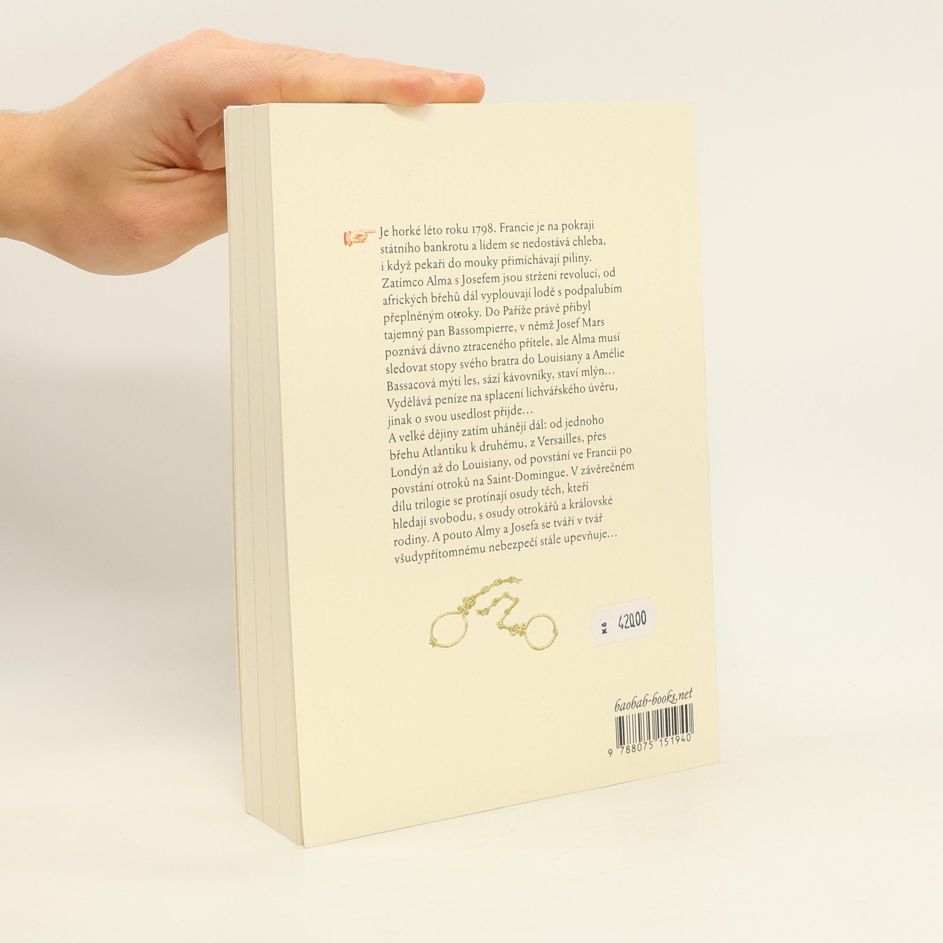 Je horké léto roku 1798. Francie je na pokraji státního bankrotu a lidem se nedostává chleba, i když pekaři do mouky přimíchávají piliny. Zatímco Alma s Josefem jsou strženi revolucí, od afrických břehů dál vyplouvají lodě s podpalubím přeplněným otroky. Do Paříže právě přibyl tajemný pan Bassompierre, v němž Josef Mars poznává dávno ztraceného přítele, ale Alma musí sledovat stopy svého bratra do Louisiany a Amélie Bassacová mýtí les, sází kávovníky, staví mlýn… Vydělává peníze na splacení lichvářského úvěru, jinak o svou usedlost přijde.... A velké dějiny zatím uhánějí dál: od jednoho břehu Atlantiku k druhému, z Versailles, přes Londýn až do Louisiany, od povstání ve Francii po povstání otroků na Saint-Domingue. V závěrečném dílu románu trilogie se protínají osudy těch, kteří hledají svobodu, s osudy otrokářů a královské rodiny. A pouto Almy a Josefa se tváří v tvář všudy přítomnému nebezpečí stále upevňuje.