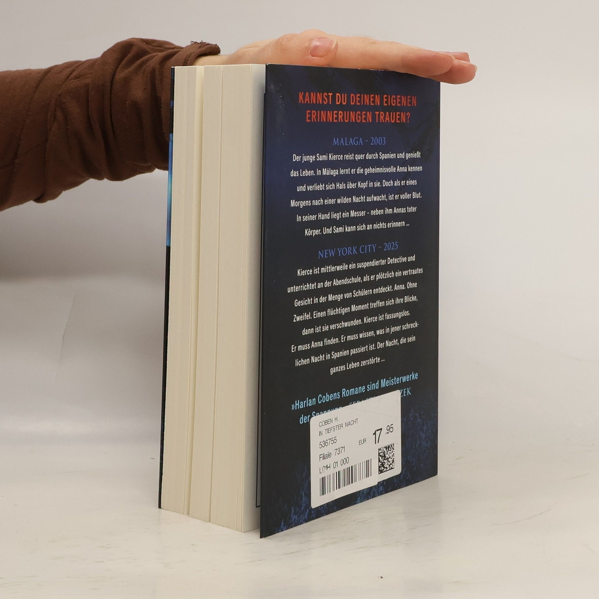 MALAGA – 2003 Der junge Sami Kierce reist quer durch Spanien und genießt das Leben. In Malaga lernt er die geheimnisvolle Anna kennen und verliebt sich Hals über Kopf in sie. Doch als er eines Morgens nach einer wilden Nacht aufwacht, ist er voller Blut. In seiner Hand liegt ein Messer – neben ihm Annas toter Körper. Und Sami kann sich an nichts erinnern … NEW YORK CITY – 2025 Kierce ist mittlerweile ein suspendierte Detective und unterrichtet an der Abendschule, als er plötzlich ein vertrautes Gesicht in der Menge von Schülern entdeckt. Anna. Ohne Zweifel. Einen flüchtigen Moment treffen sich ihre Blicke, dann ist sie verschwunden. Kierce ist fassungslos. Er muss Anna finden. Er muss wissen, was in jener schrecklichen Nacht in Spanien passiert ist. Die Nacht, die sein ganzes Leben zerstörte …