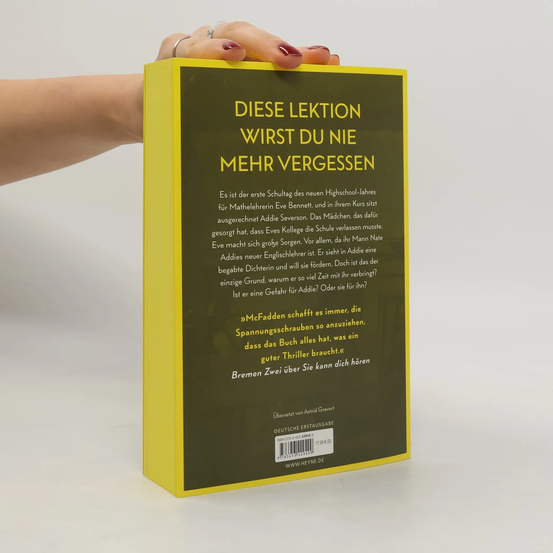 Lektion 1: Sobald du die Schule betrittst, traue niemandem. Mit farbig gestaltetem Buchschnitt – nur in limitierter Erstauflage der gedruckten Ausgabe (Lieferung je nach Verfügbarkeit) Eigentlich hat Eve Bennett ein gutes Leben. Sie ist Mathelehrerin an der örtlichen Highschool und verheiratet mit Nate, der dort Englisch unterrichtet. Doch letztes Jahr wurde die Schule von einem Skandal erschüttert, in dessen Zentrum eine Schülerin stand. Und dieses Jahr ist diese Schülerin in Eves Klasse. Addie kann man nicht trauen, sie lügt und verletzt Menschen. Aber niemand kennt die wahre Addie. Niemand kennt das Geheimnis, das sie zerstören könnte. Und Addie würde alles dafür tun, dass es so bleibt. Ihr einziger Lichtblick in diesem Schuljahr: ihr neuer Englischlehrer Nate Bennett.