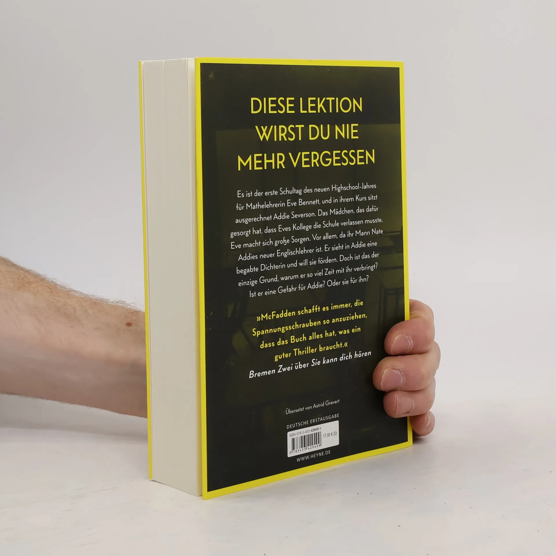 Lektion 1: Sobald du die Schule betrittst, traue niemandem. Mit farbig gestaltetem Buchschnitt – nur in limitierter Erstauflage der gedruckten Ausgabe (Lieferung je nach Verfügbarkeit) Eigentlich hat Eve Bennett ein gutes Leben. Sie ist Mathelehrerin an der örtlichen Highschool und verheiratet mit Nate, der dort Englisch unterrichtet. Doch letztes Jahr wurde die Schule von einem Skandal erschüttert, in dessen Zentrum eine Schülerin stand. Und dieses Jahr ist diese Schülerin in Eves Klasse. Addie kann man nicht trauen, sie lügt und verletzt Menschen. Aber niemand kennt die wahre Addie. Niemand kennt das Geheimnis, das sie zerstören könnte. Und Addie würde alles dafür tun, dass es so bleibt. Ihr einziger Lichtblick in diesem Schuljahr: ihr neuer Englischlehrer Nate Bennett.